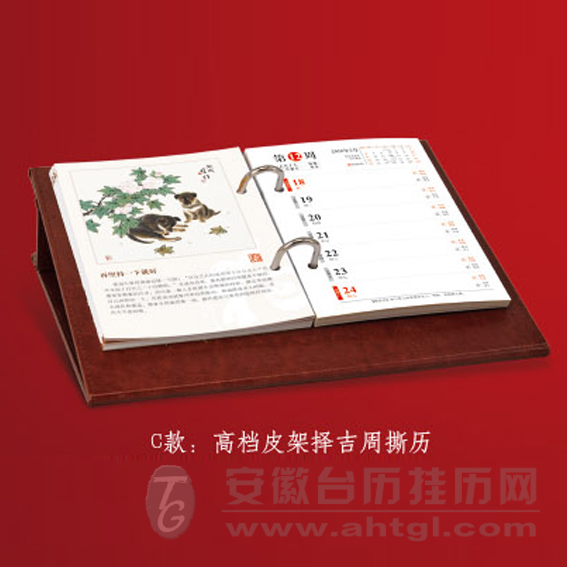 GX-001C款(瑞犬賀歲) 高檔臺(tái)座擇吉周撕歷 內(nèi)頁尺寸:123mmX168mm- 配精美禮品包裝盒