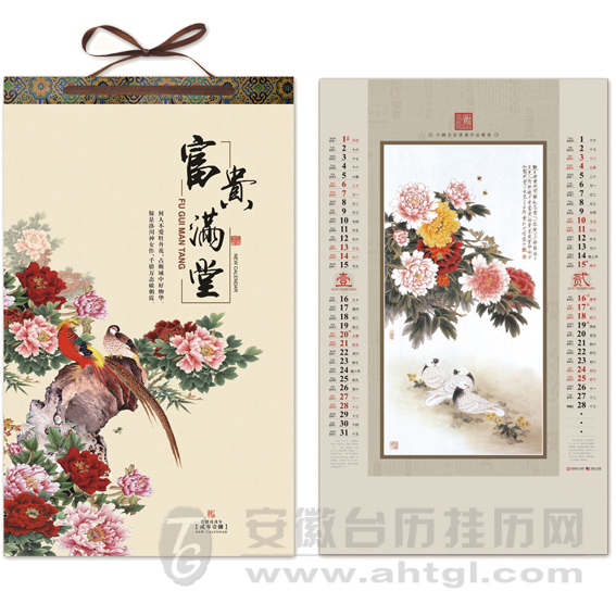 GY-8084(富貴滿堂) 大度對(duì)開套裝絹畫月歷 成品尺寸:530mmX880mm 廣告尺寸:400mmX110mm