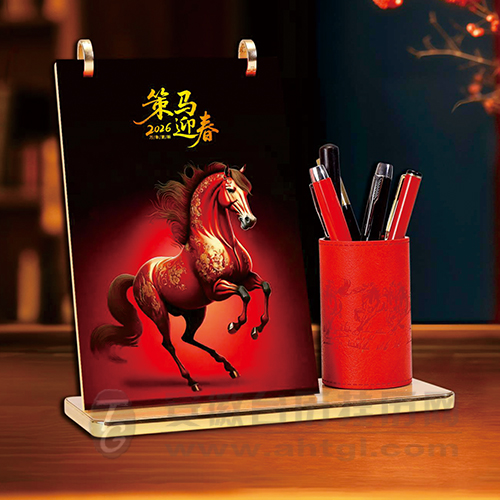 名稱:皮質(zhì)筆筒木藝臺歷-策馬…
