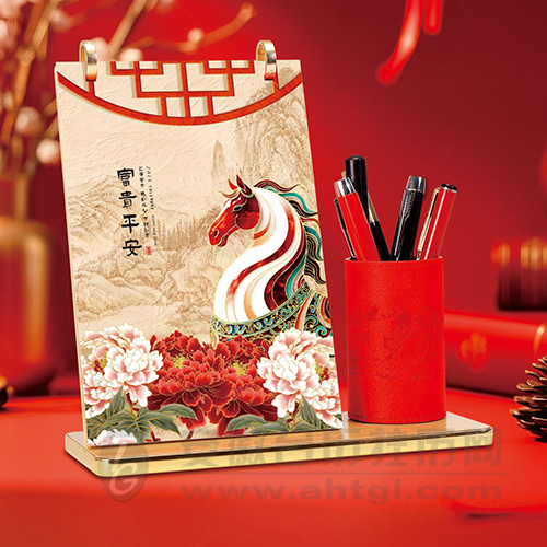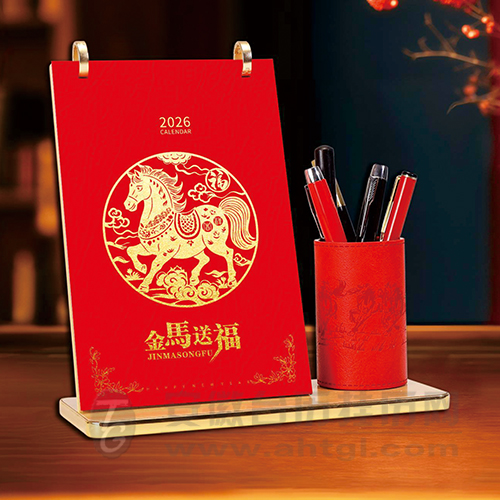 名稱:皮質(zhì)筆筒木藝臺歷-金馬…