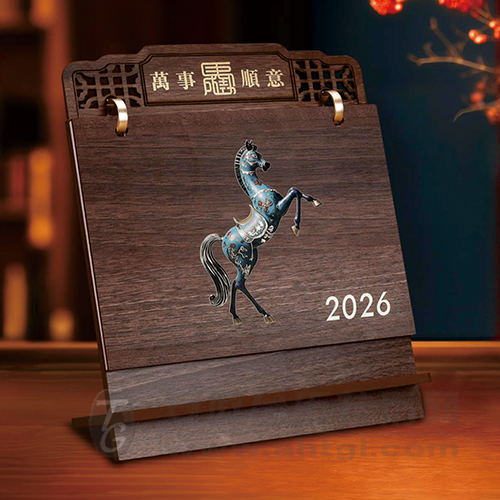 名稱:平板皮質(zhì)木藝臺歷-馬到…