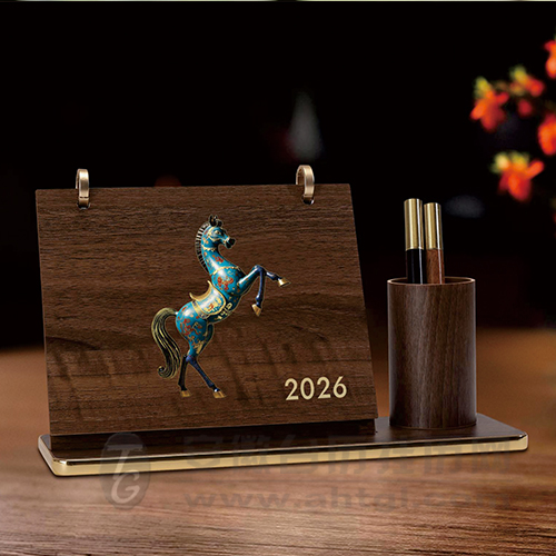 名稱:平板皮質(zhì)木藝臺(tái)歷-金馬…