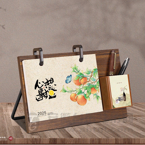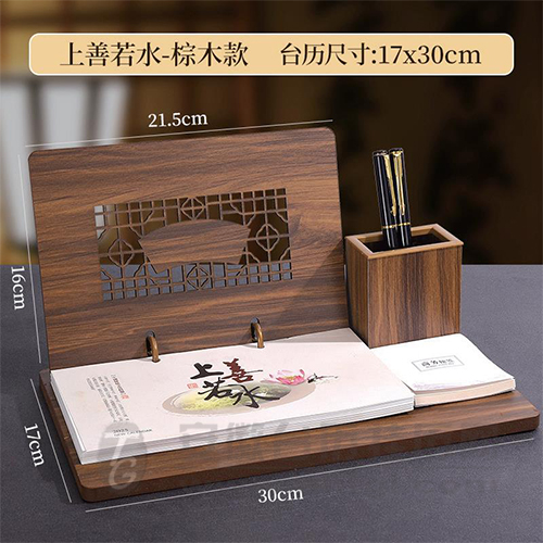 圖案:木質(zhì)筆筒商務(wù)臺歷-心想…
