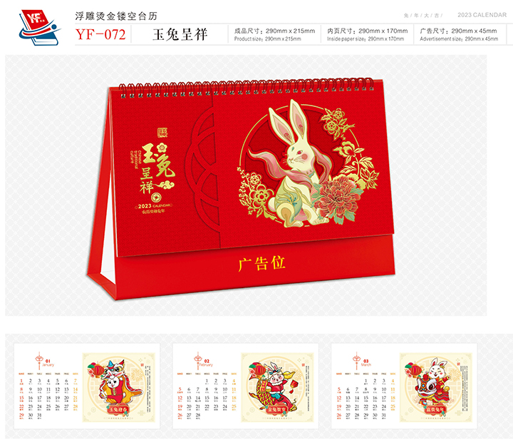 浮雕燙金鏤空臺歷-玉兔呈祥