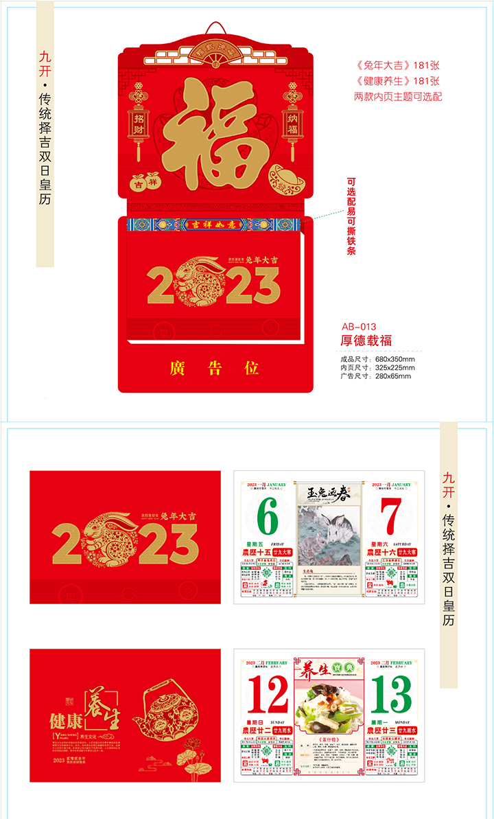 圖案:九開傳統(tǒng)擇吉雙日歷皇歷-兔年大吉