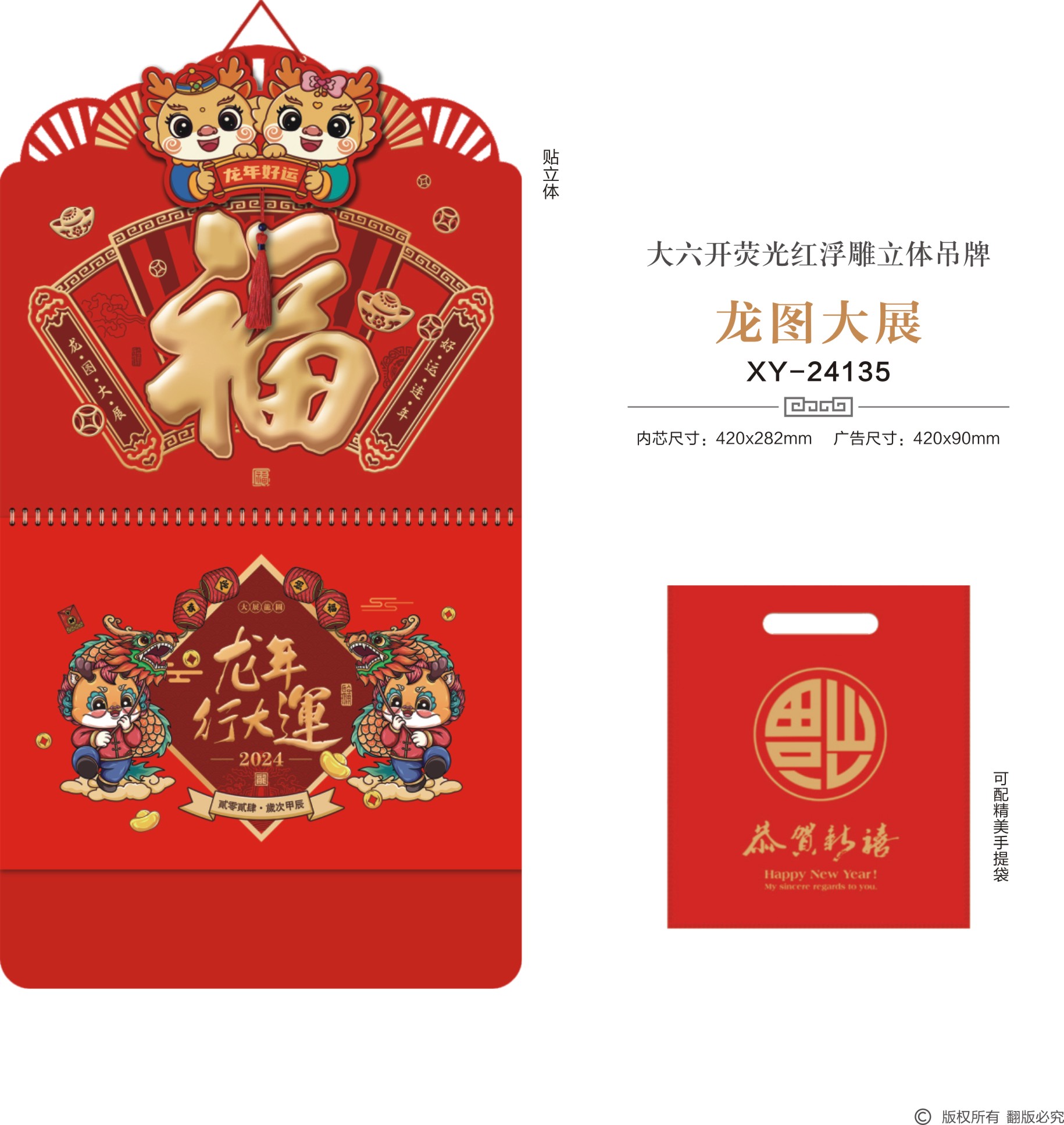 大六開熒光紅浮雕立體吊牌-龍圖大展