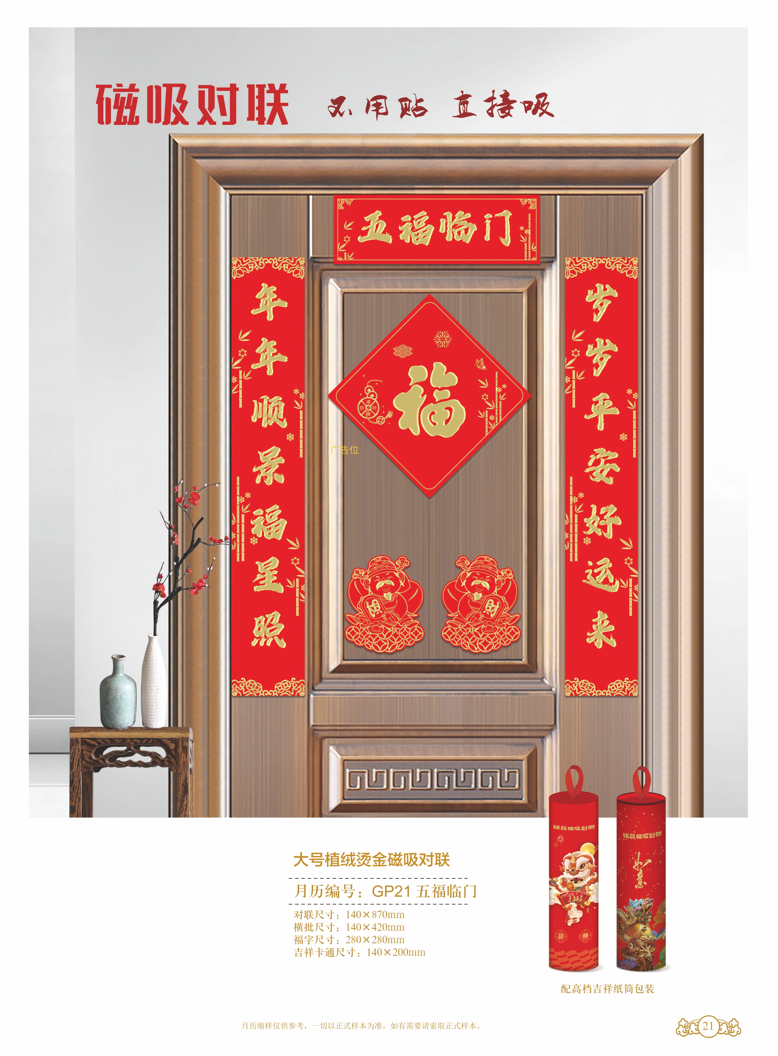 大號植絨燙金磁吸對聯(lián)-五福臨門
