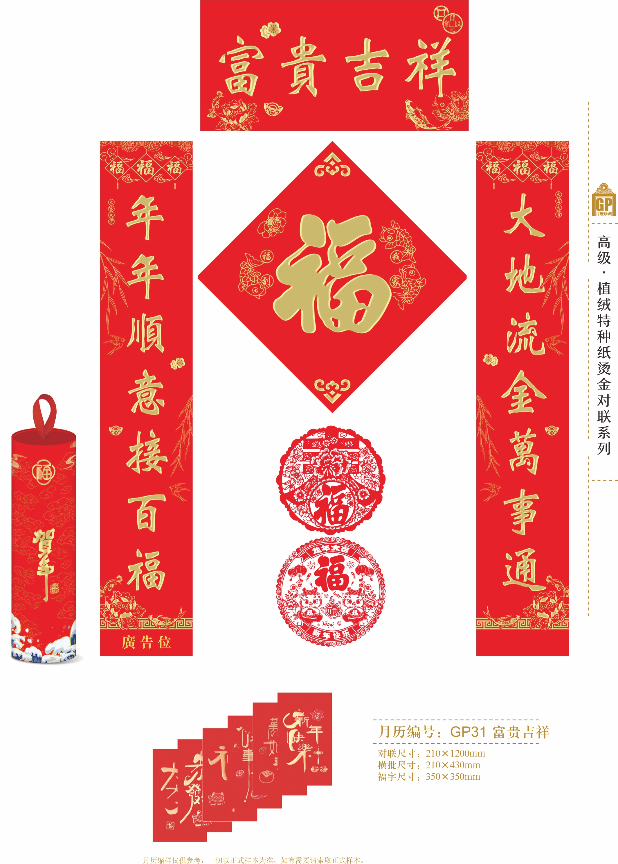 高級▪植絨特種紙燙金對聯(lián)系列-富貴吉祥