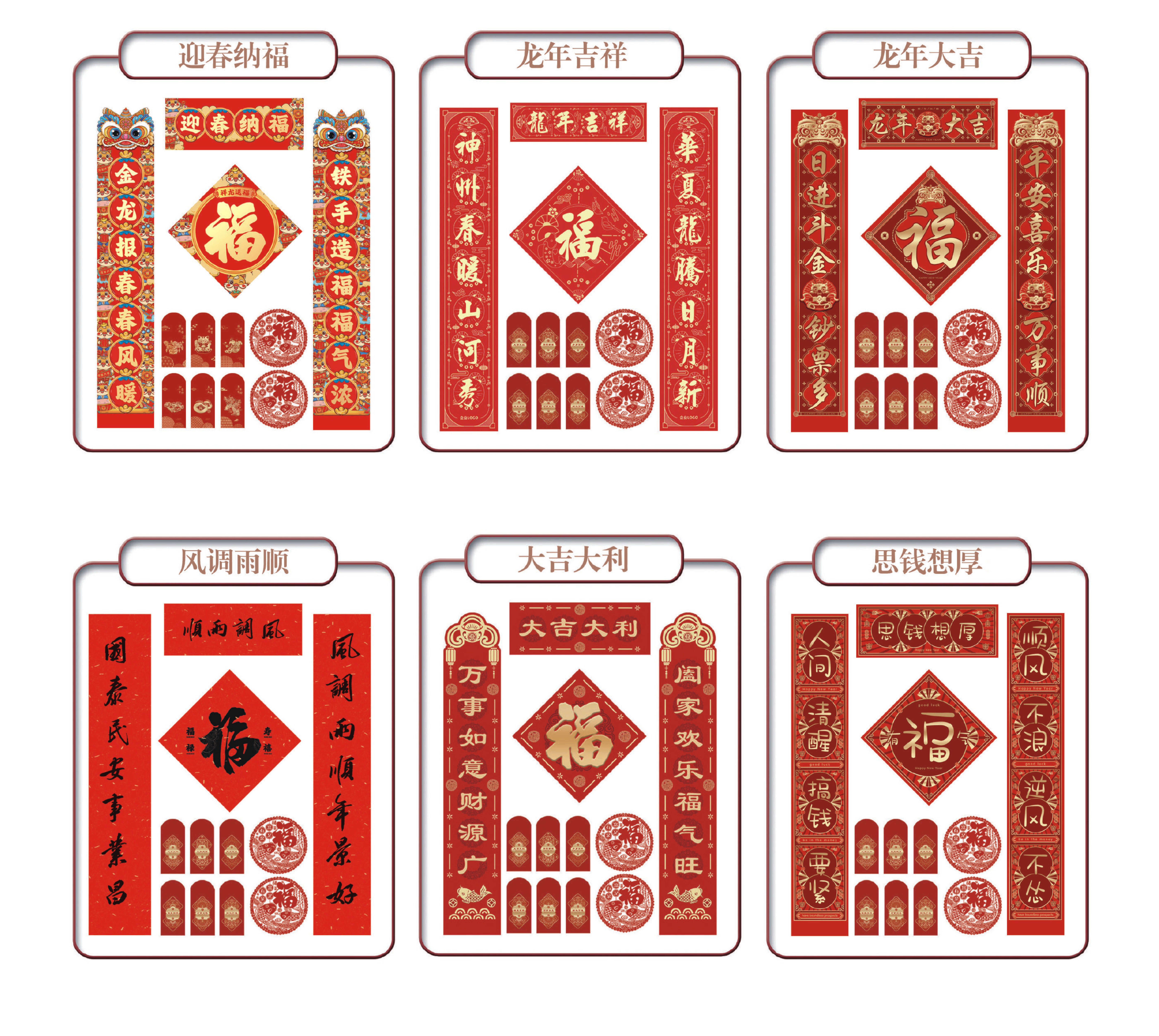 對(duì)聯(lián)一幅;窗花一對(duì);福貼一張;利事封六個(gè)