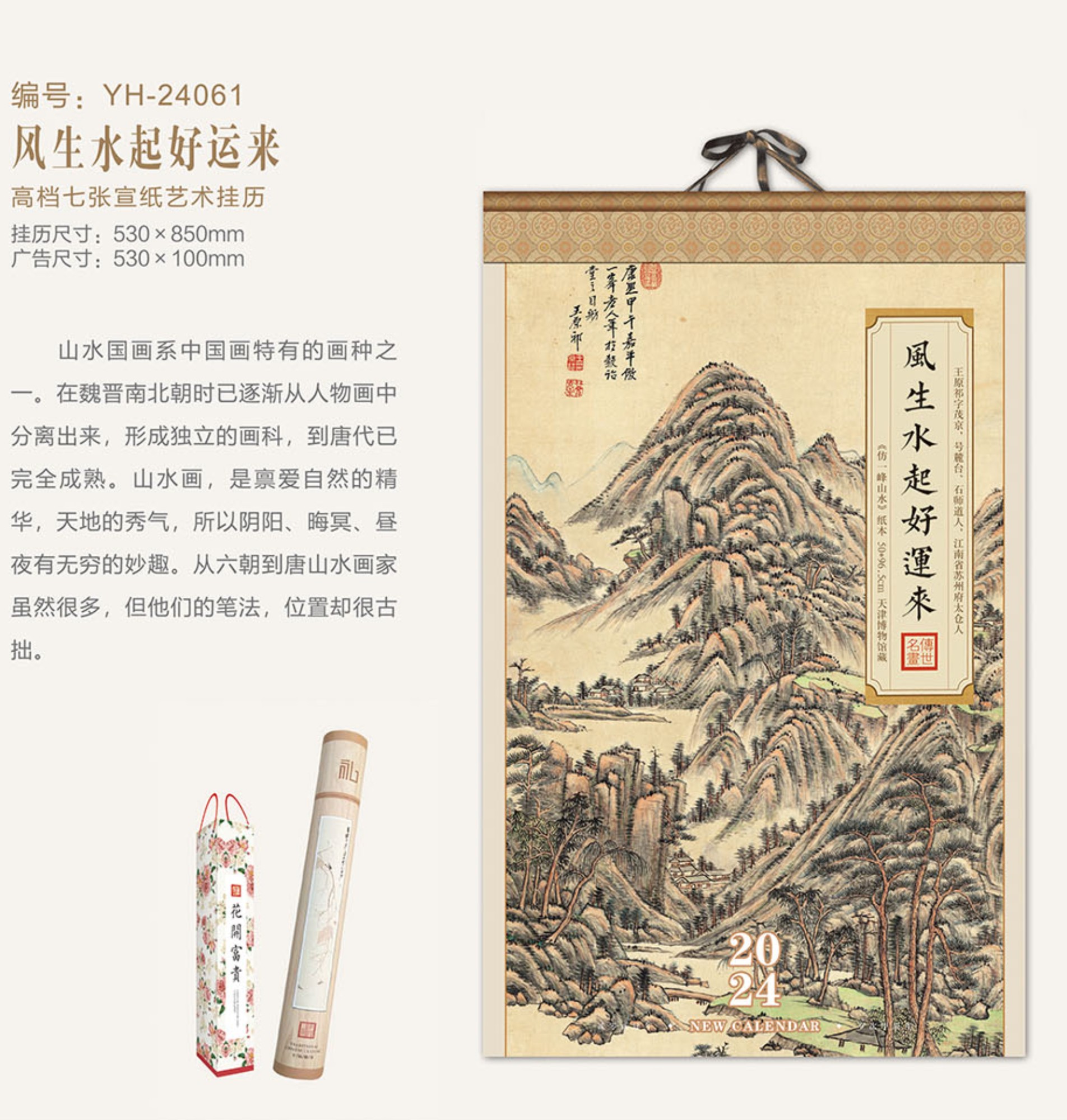 高檔七張宣紙藝術(shù)掛歷-風(fēng)生水起好運(yùn)來(lái)