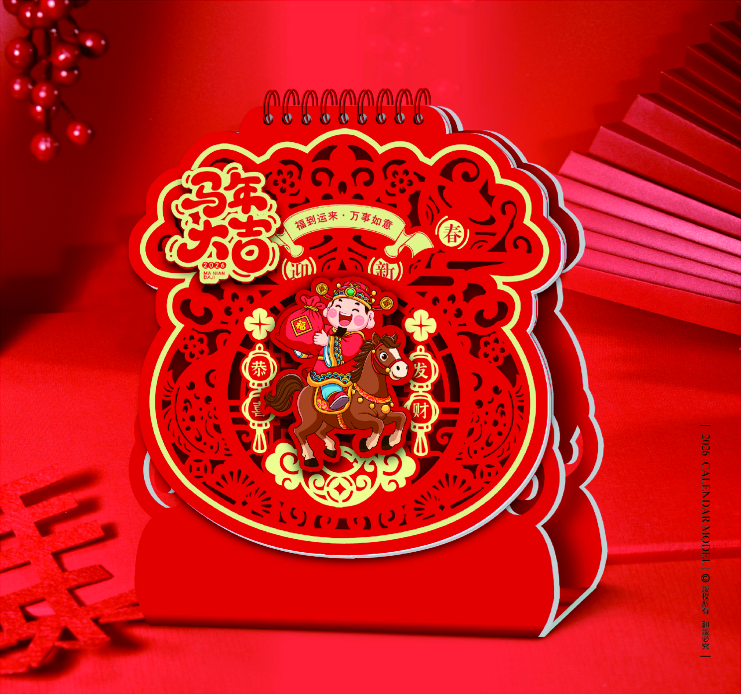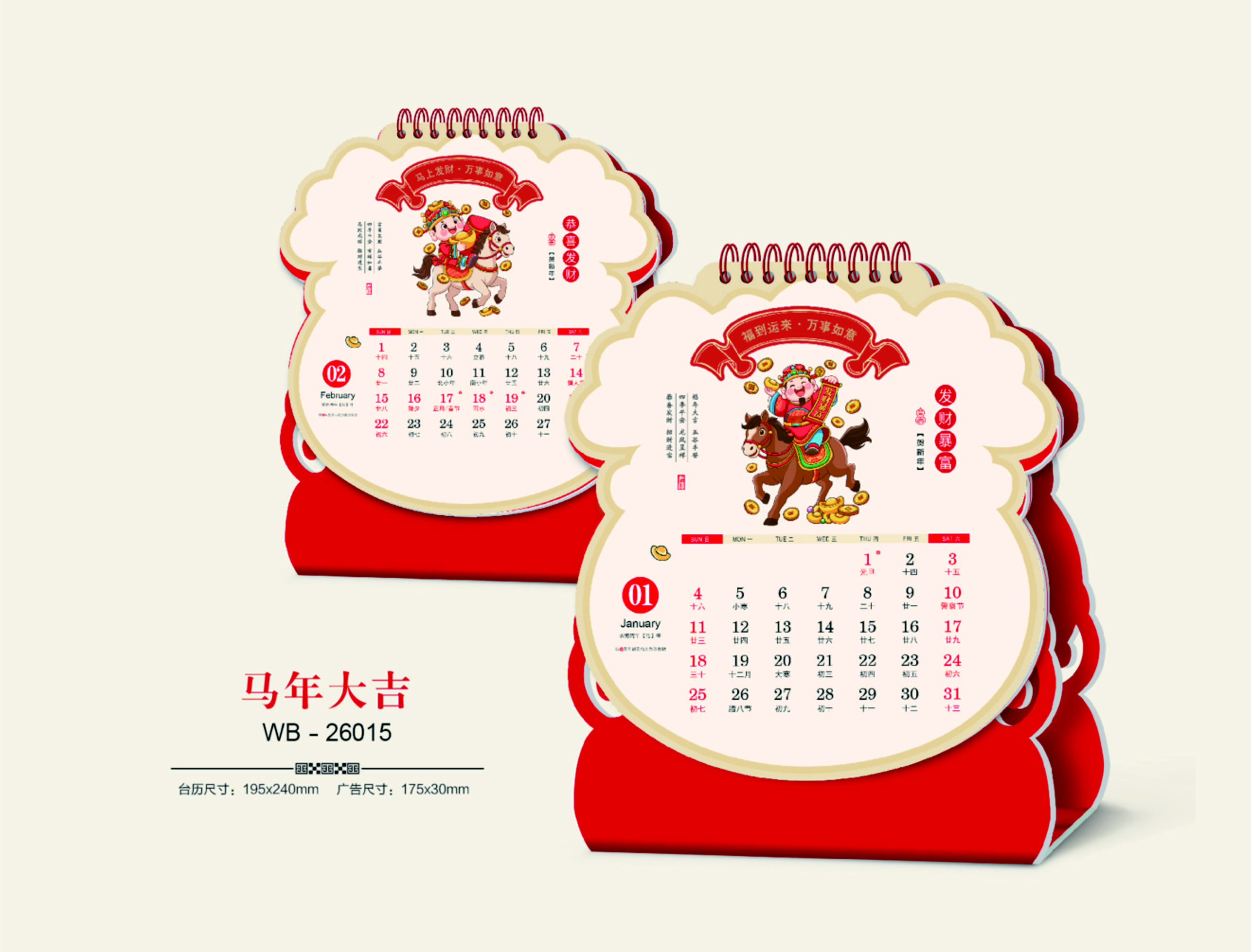 十三張?zhí)厣愋透〉袼囆g(shù)臺歷-馬年大吉
