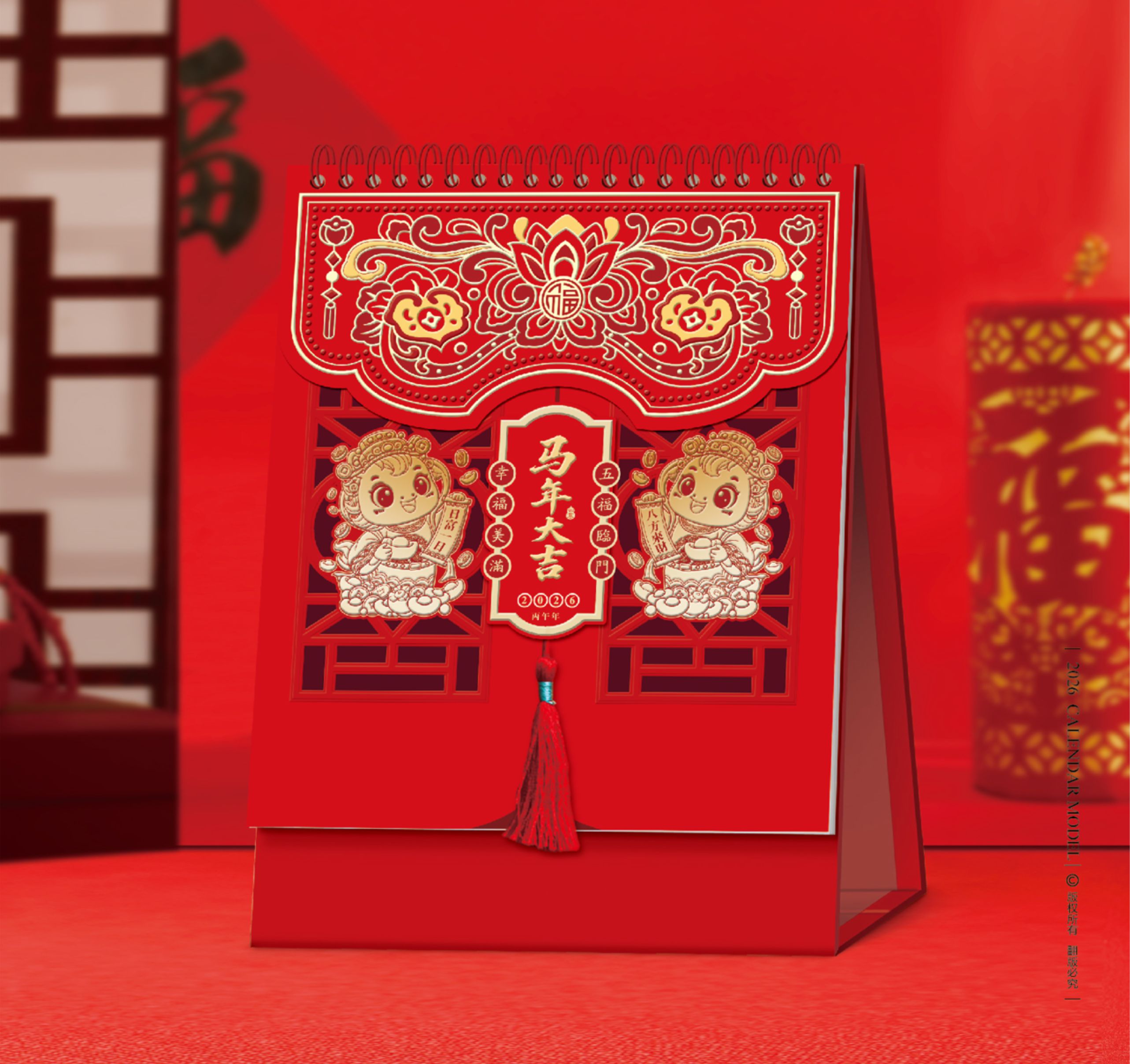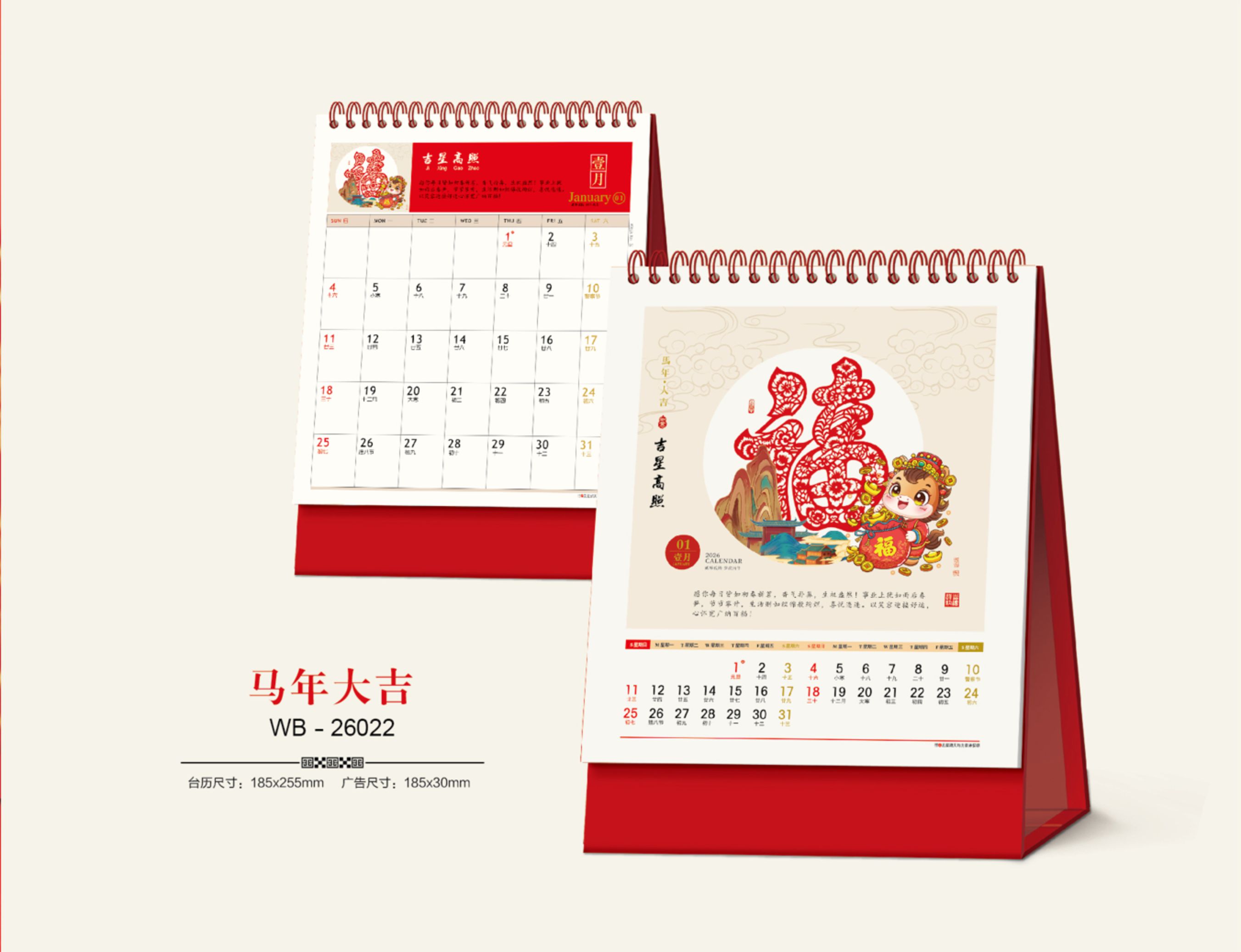 十四張喜慶精雕藝術臺歷-馬年大吉