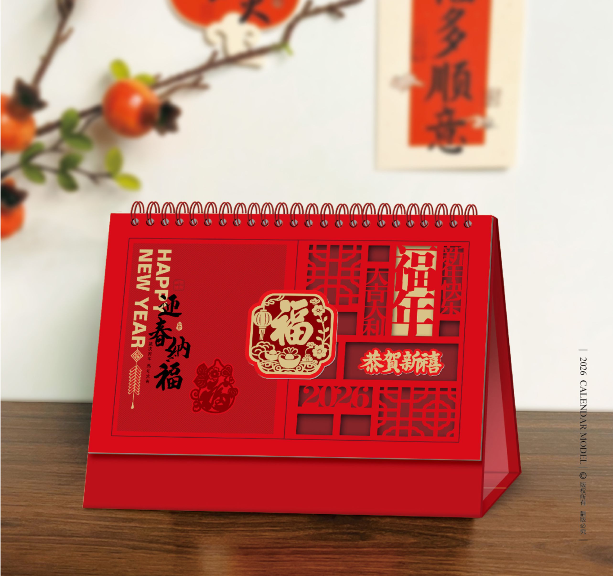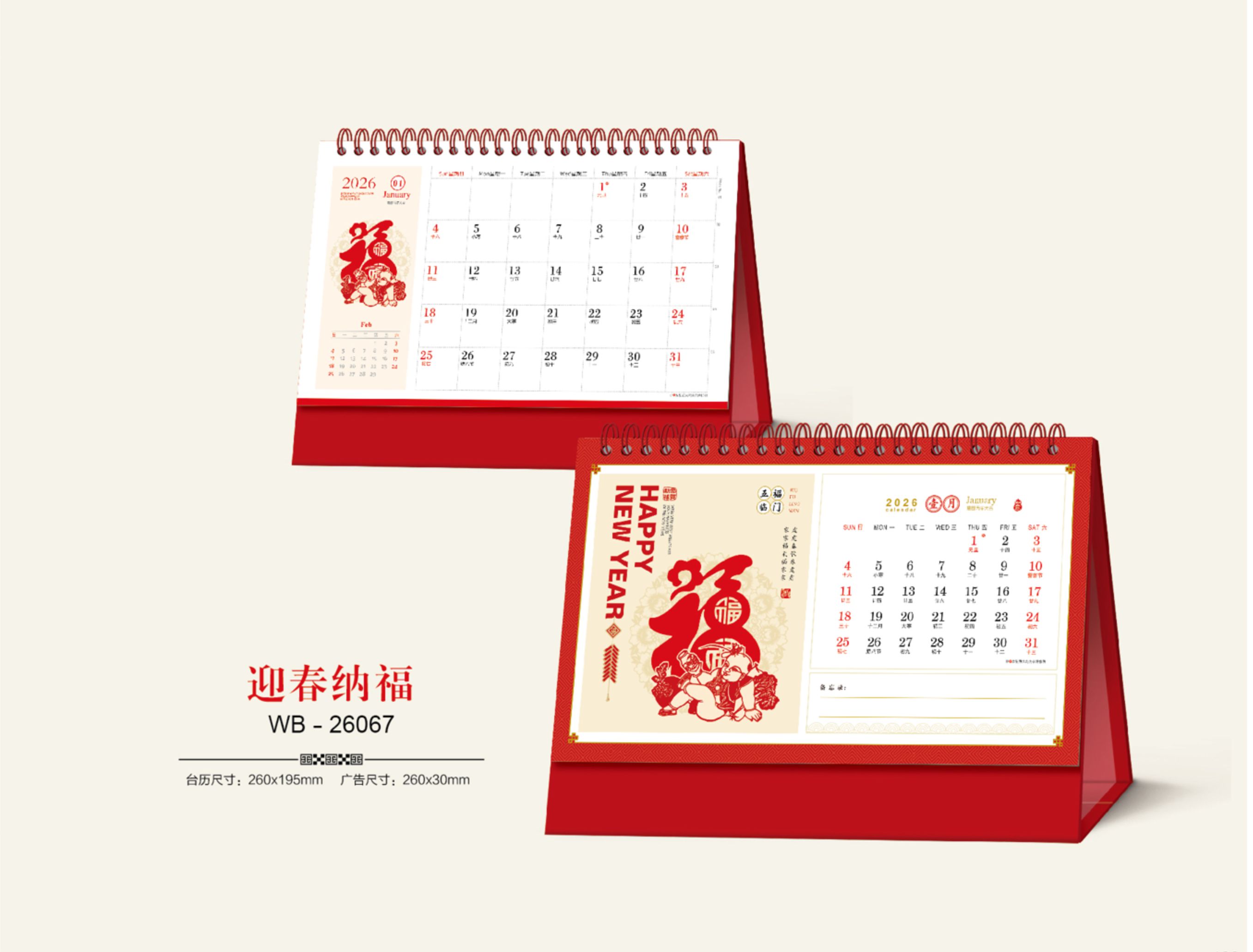 十四張熒光紅浮雕藝術臺歷-迎春納福
