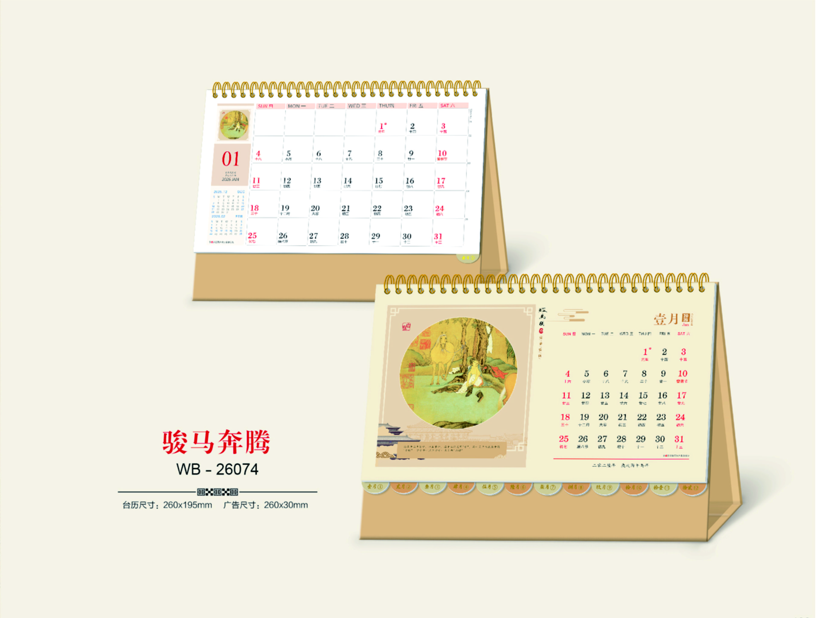 十四張中國(guó)風(fēng)藝術(shù)臺(tái)歷-駿馬奔騰