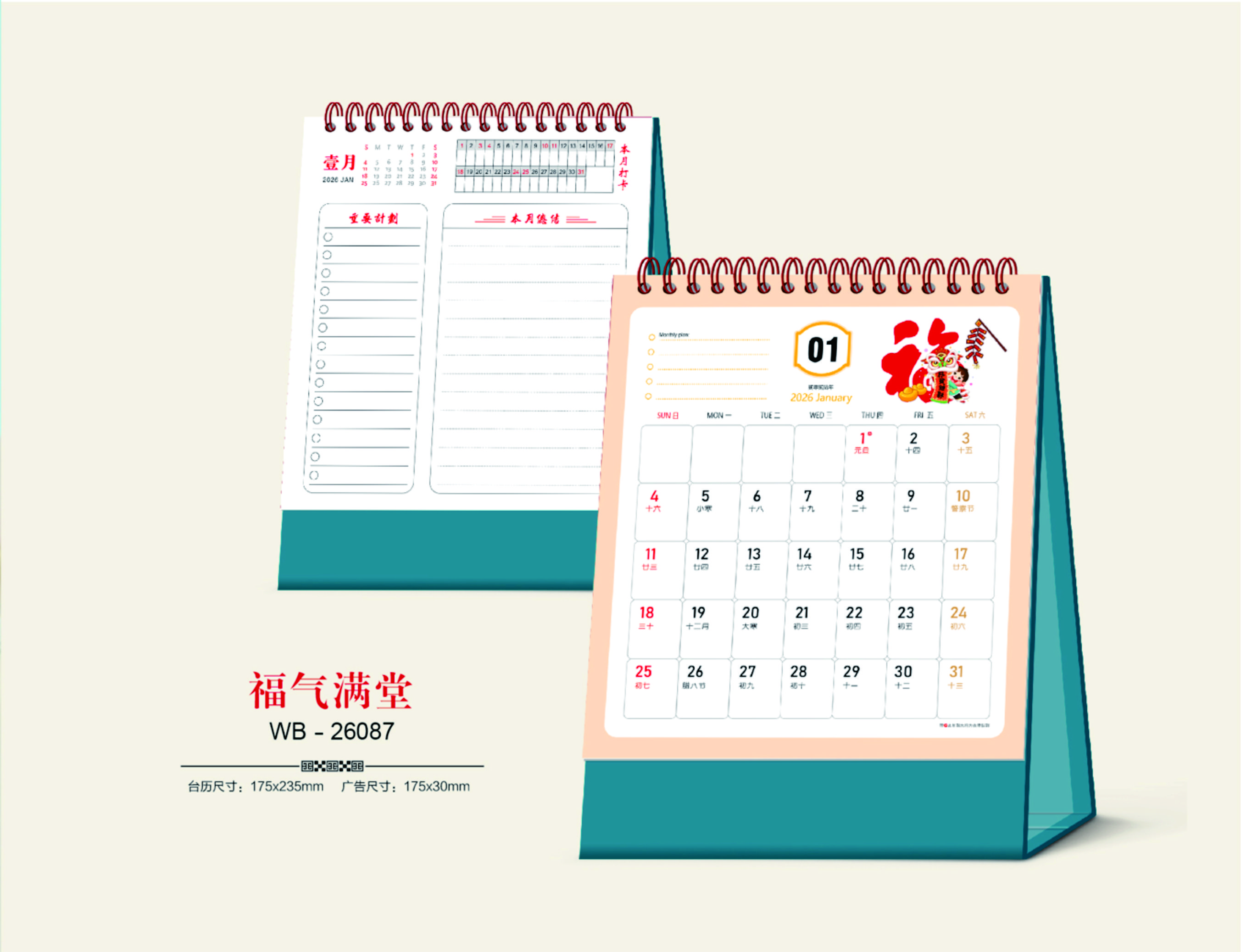 臺(tái)歷尺寸:185*255mm