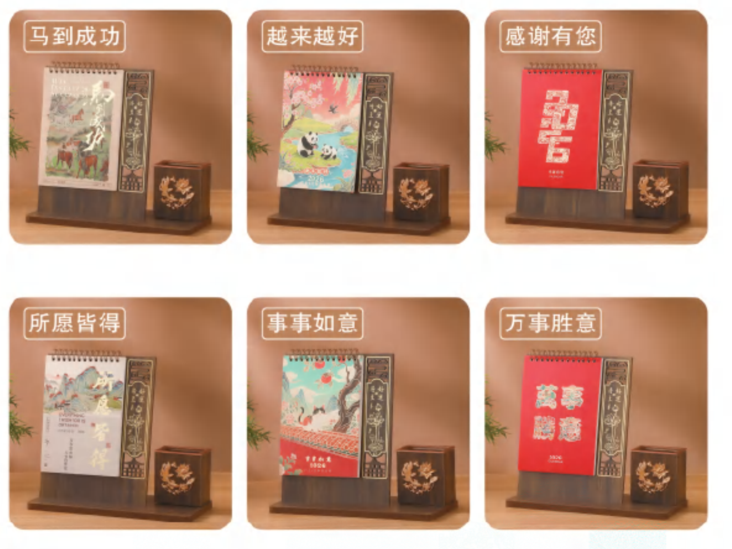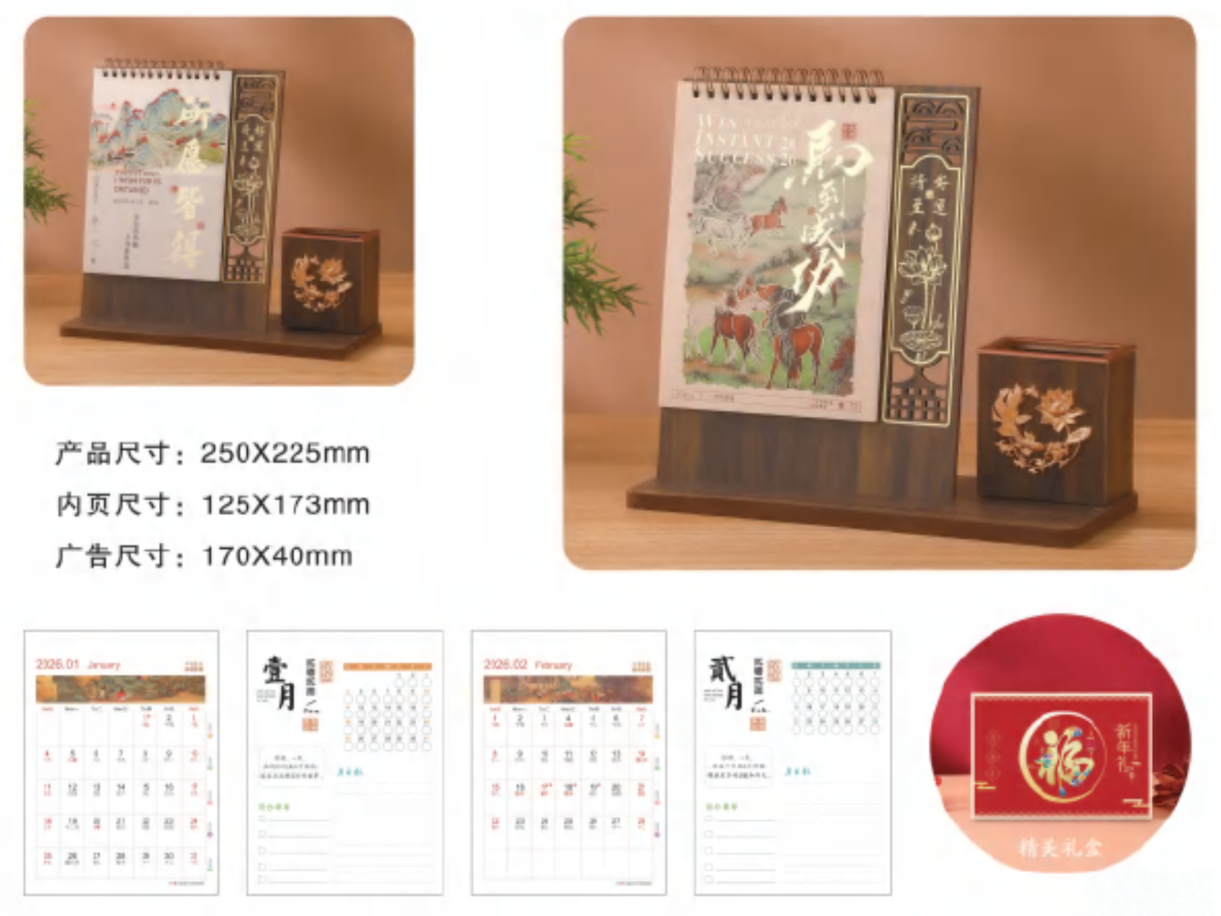 錦鯉筆筒木質(zhì)臺歷-馬到成功