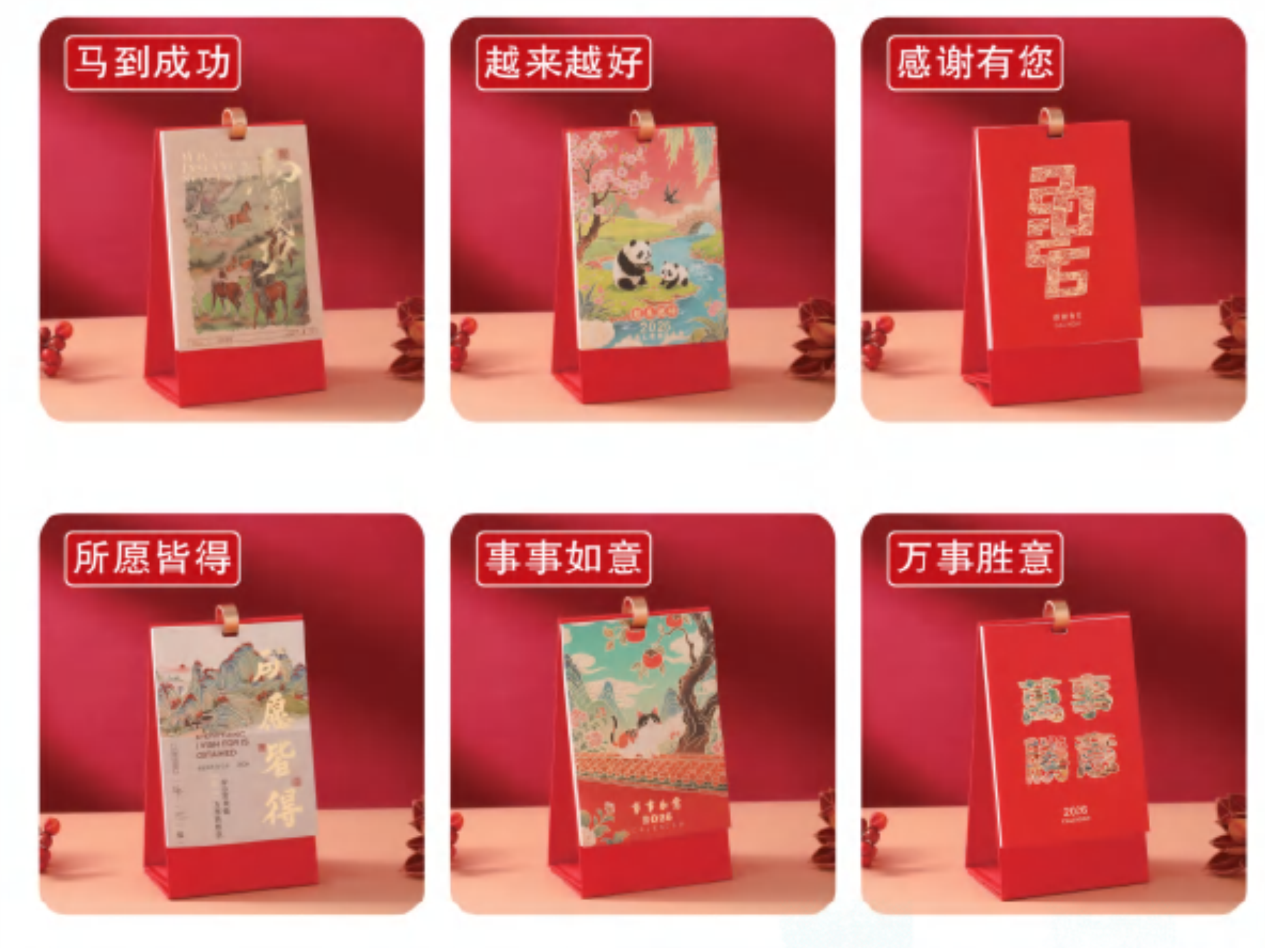布藝單環(huán)扣禮盒臺歷-馬到成功