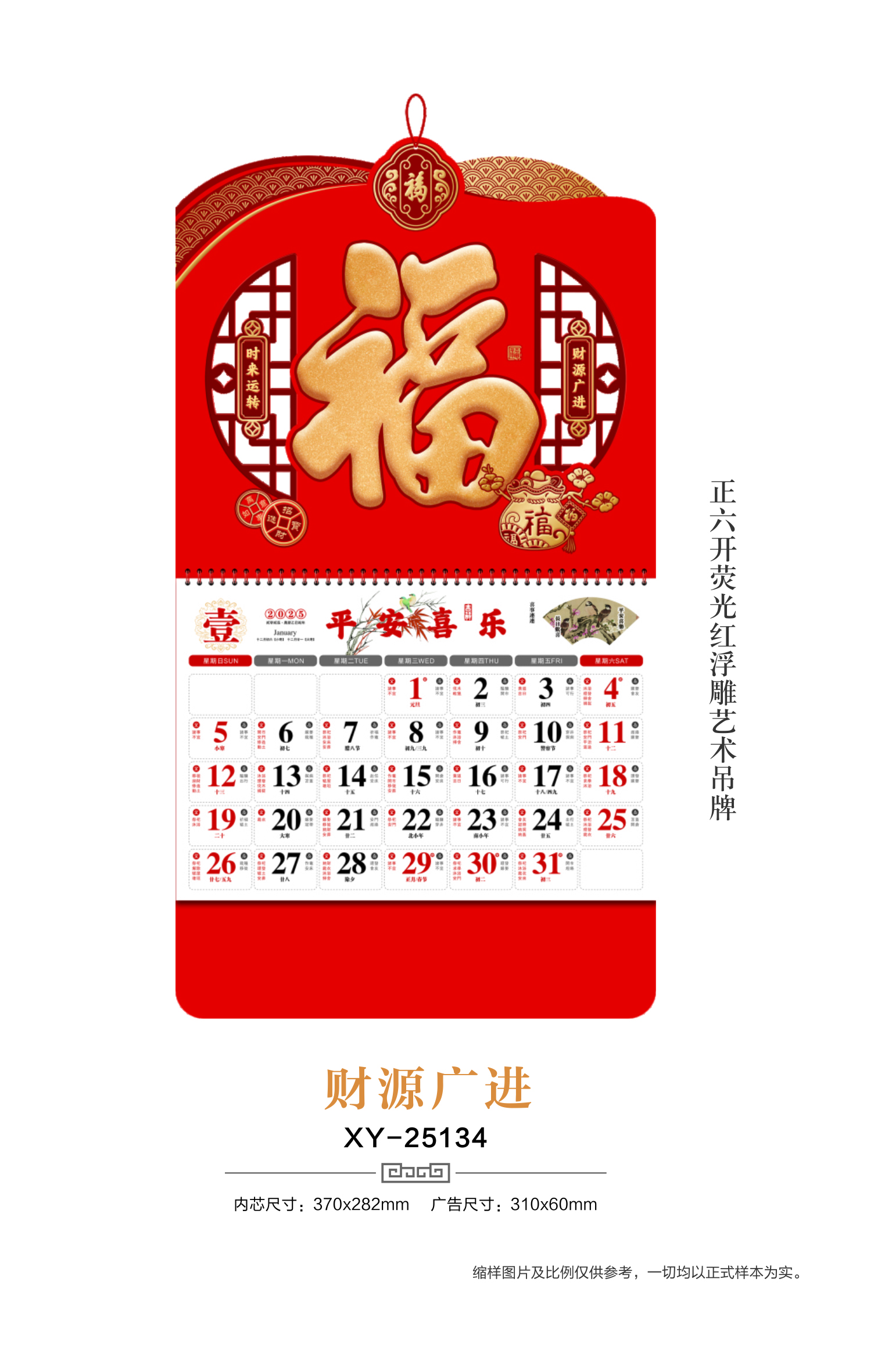 正六開熒光紅浮雕藝術(shù)吊牌-財源廣進