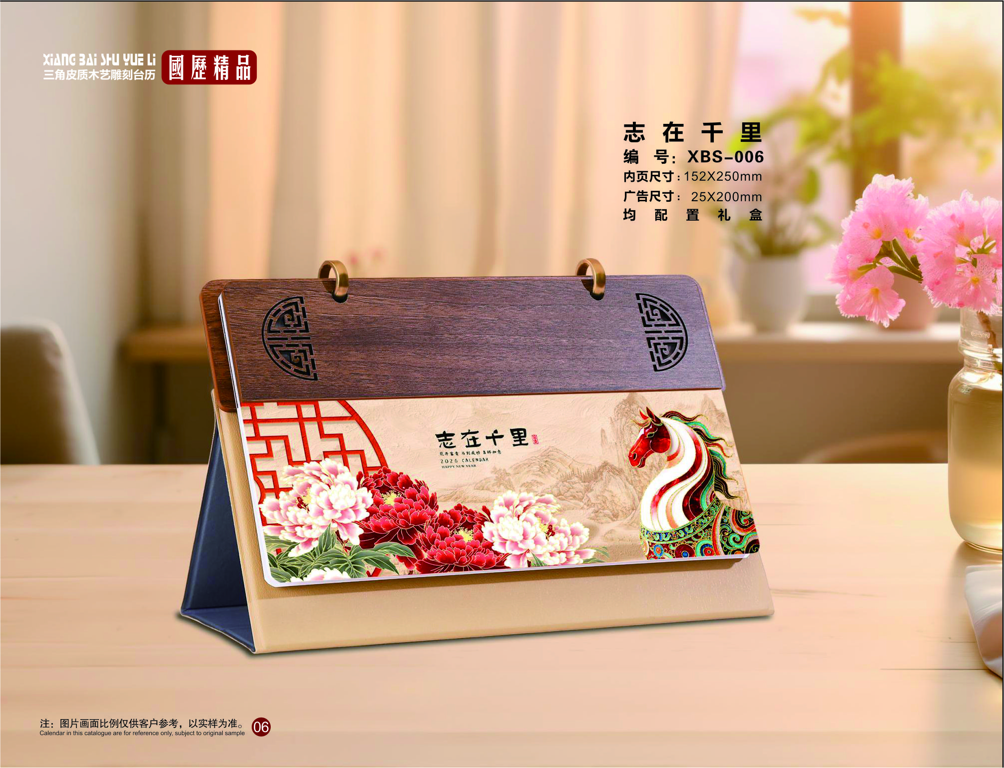 三角皮質(zhì)木藝雕刻臺歷-志在千里