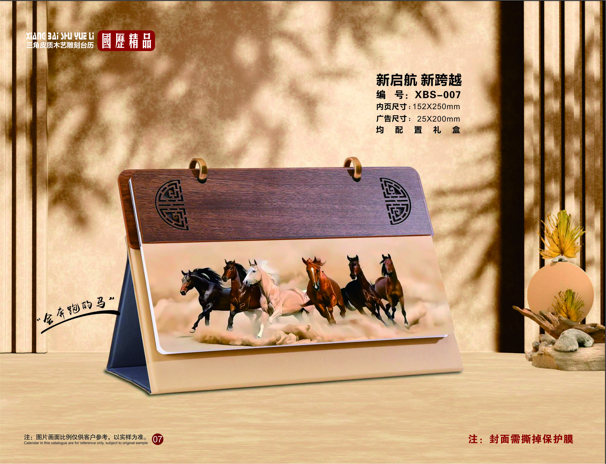 三角皮質(zhì)木藝雕刻臺歷-新啟航 新跨越