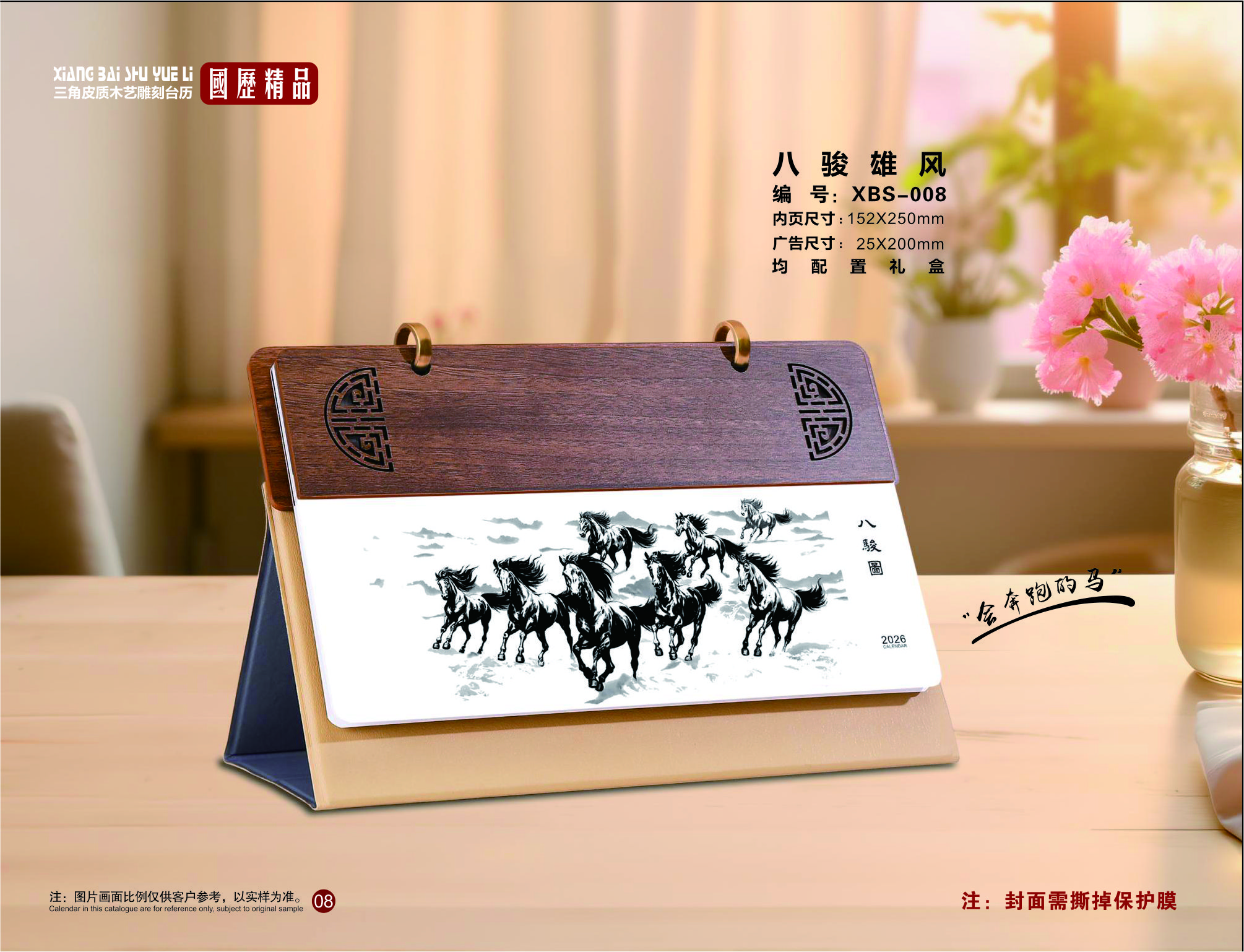 三角皮質(zhì)木藝雕刻臺歷-八駿雄風