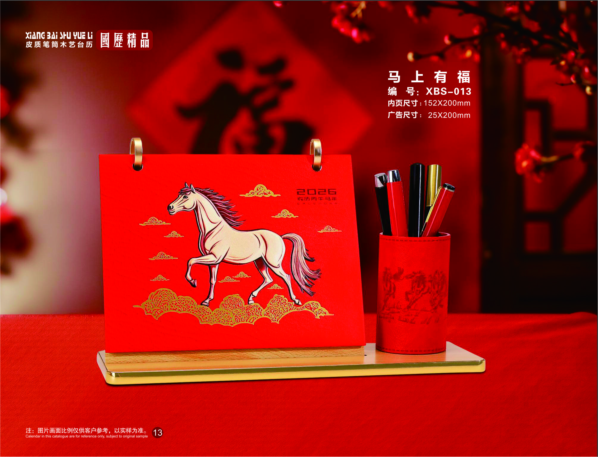 皮質(zhì)筆筒木藝臺(tái)歷-馬上有福