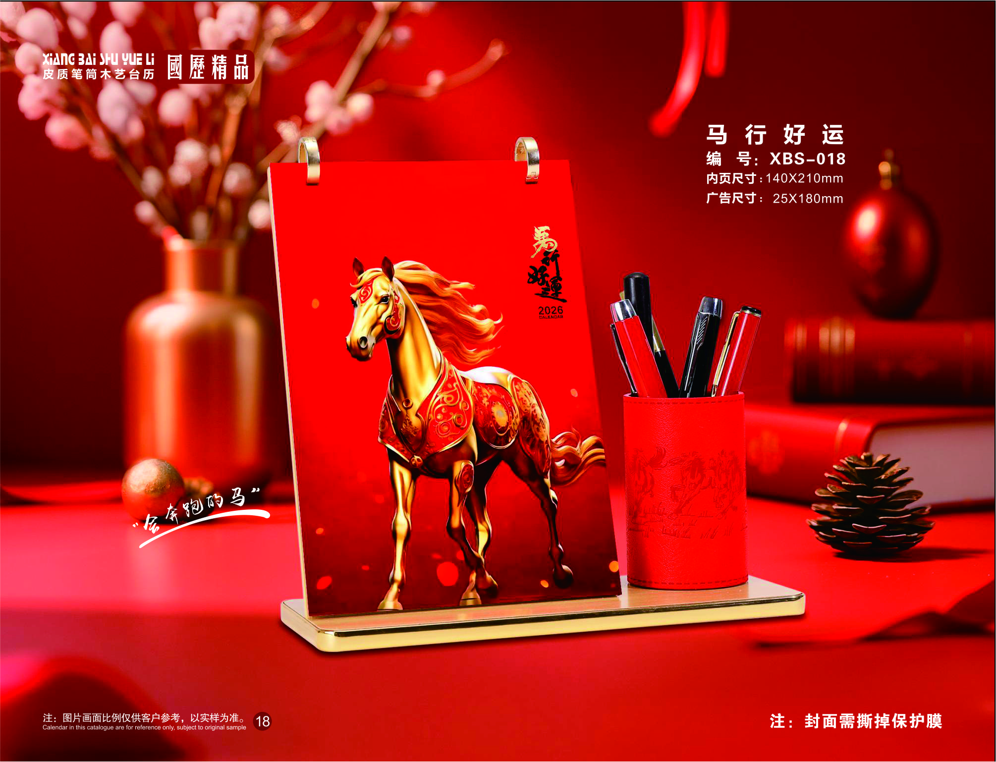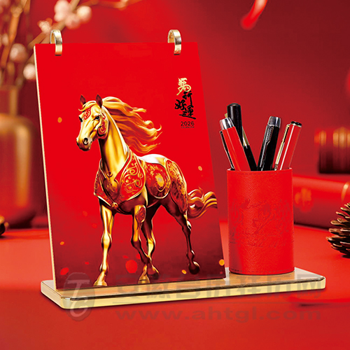 皮質(zhì)筆筒木藝臺(tái)歷-馬行好運(yùn)