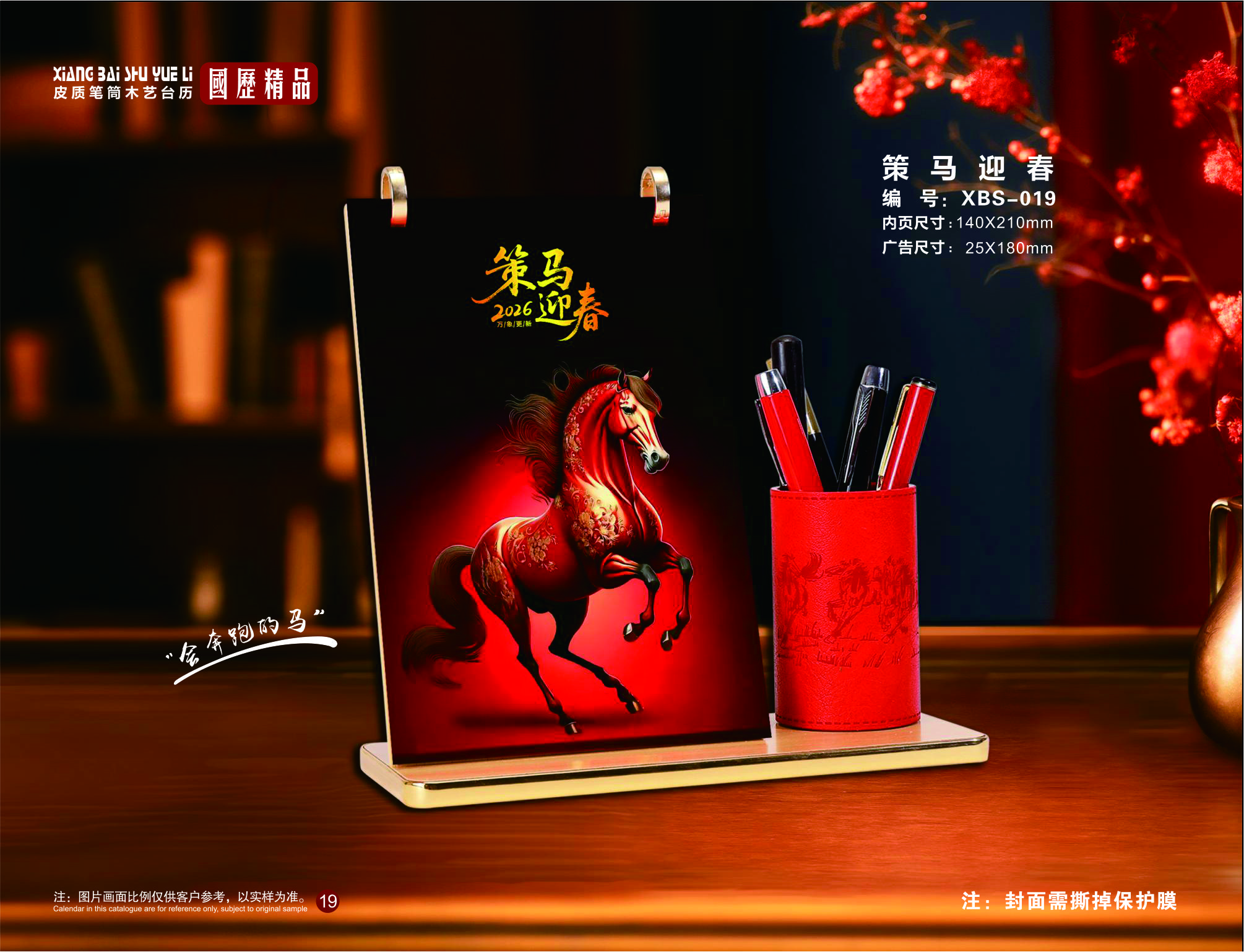 皮質(zhì)筆筒木藝臺歷-策馬迎春