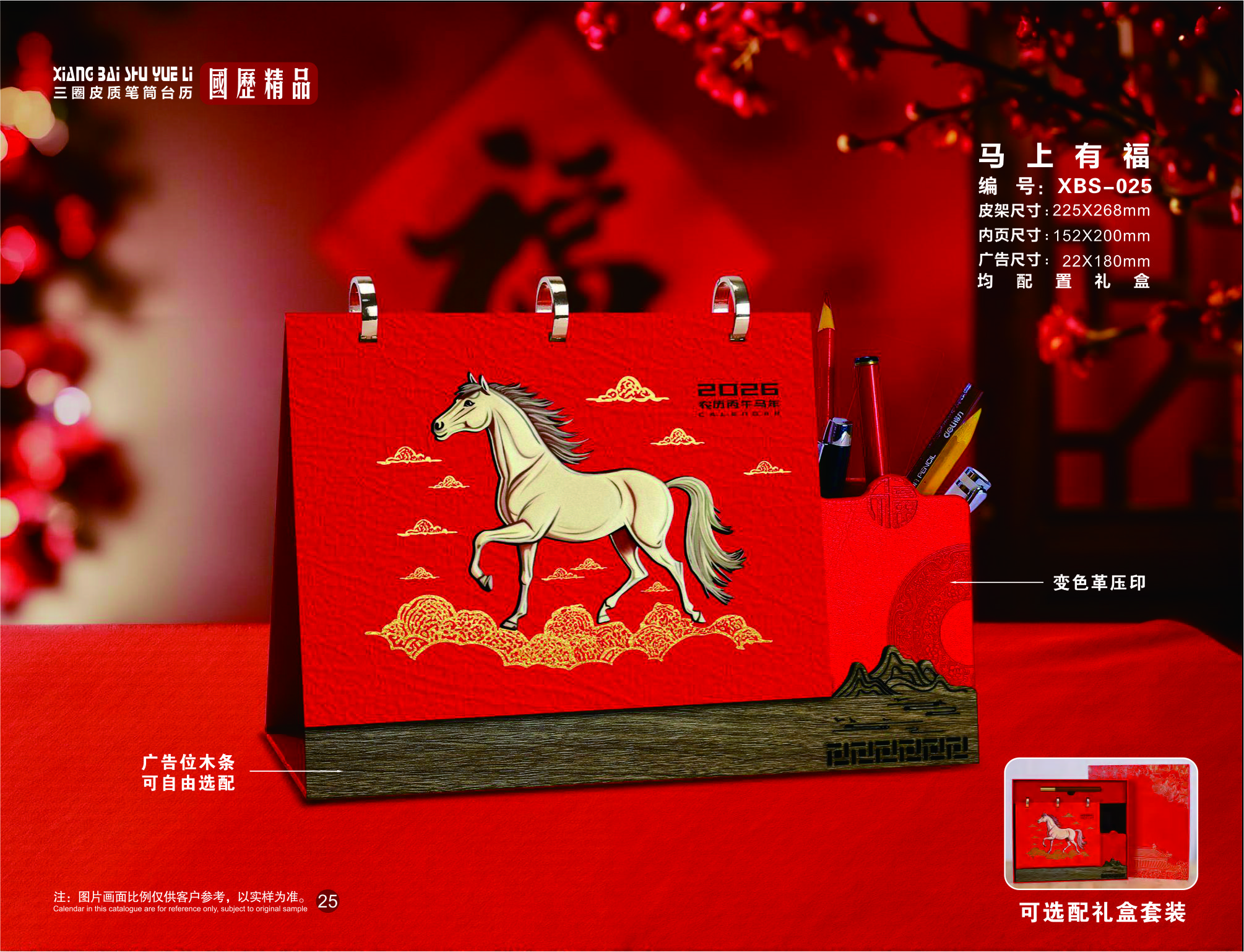三圈皮質(zhì)筆筒臺(tái)歷-馬上有福