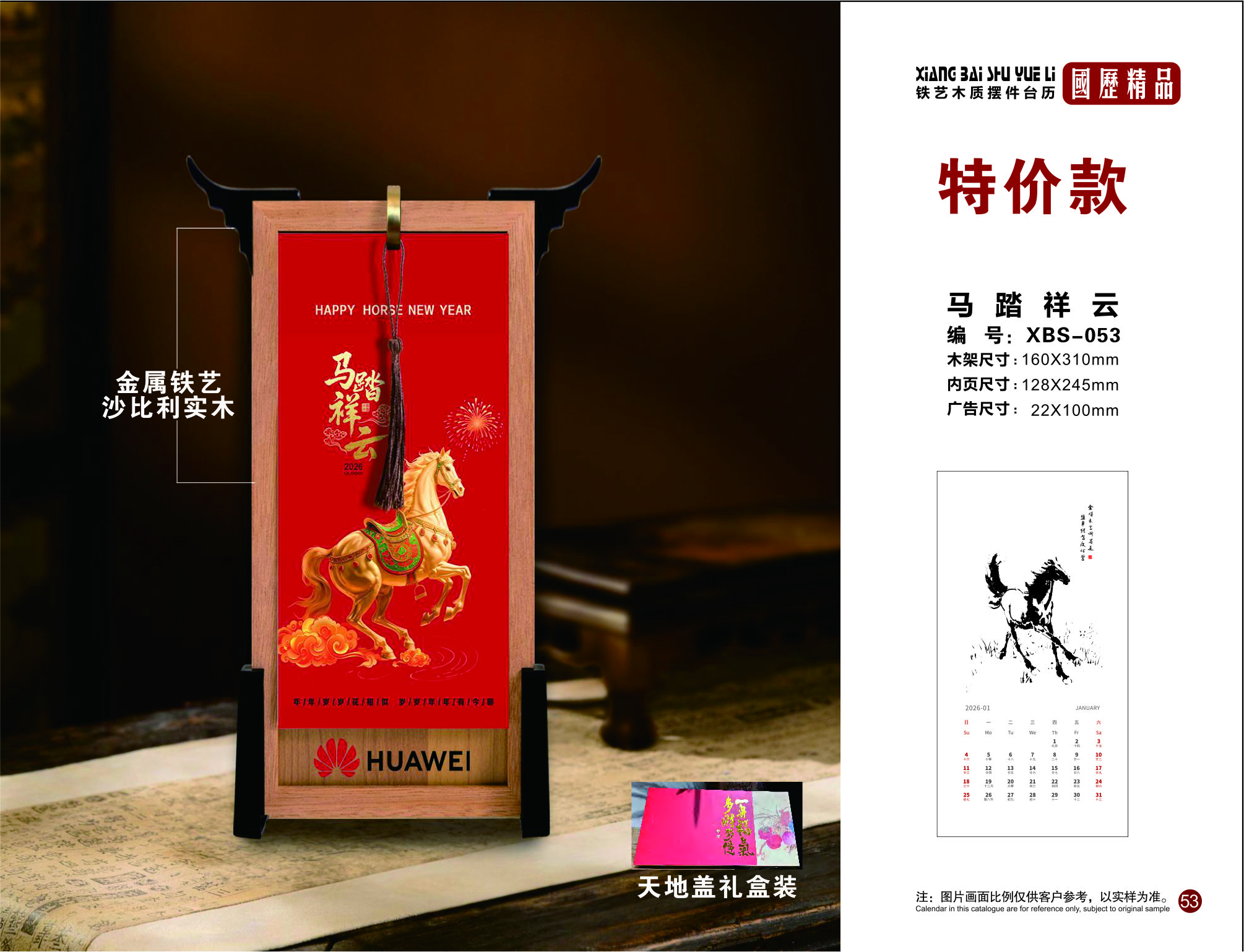鐵藝木質(zhì)擺件臺(tái)歷-馬踏祥云