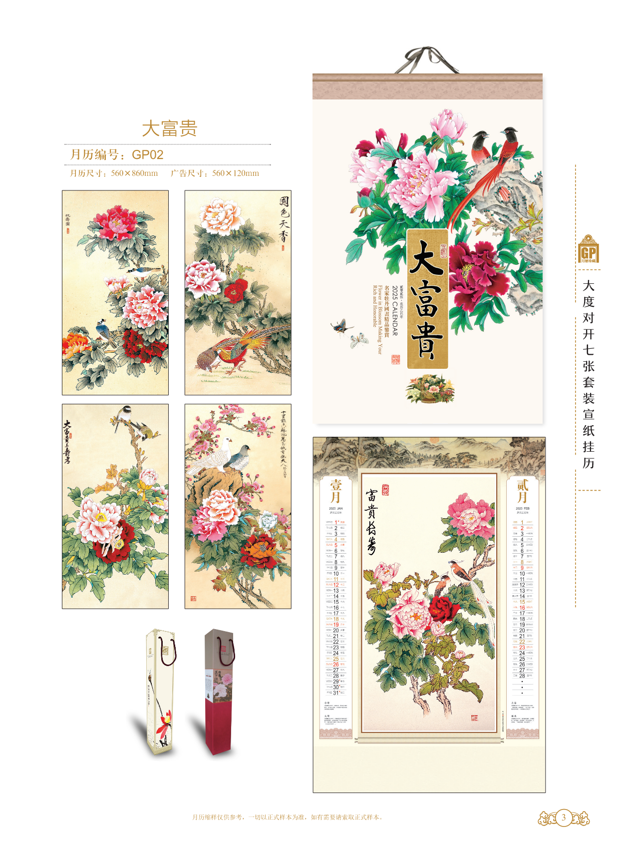 大度對開七張?zhí)籽b宣紙掛歷-大富貴