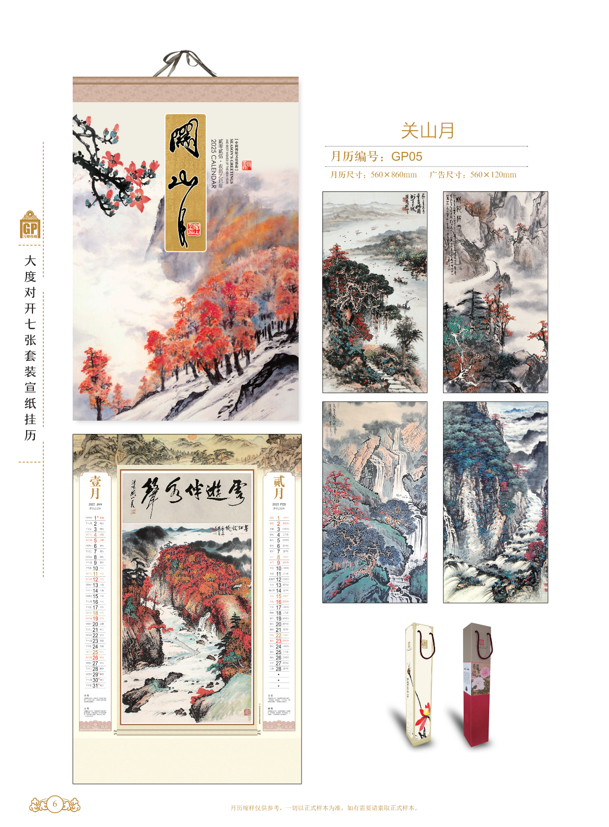 大度對(duì)開七張?zhí)籽b宣紙掛歷-關(guān)山月
