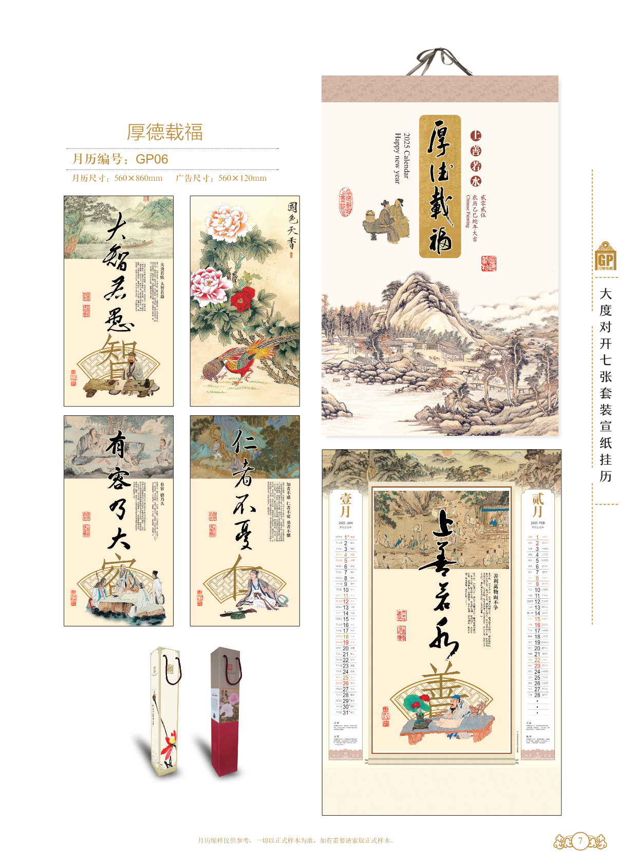 大度對開七張?zhí)籽b宣紙掛歷-厚德載福