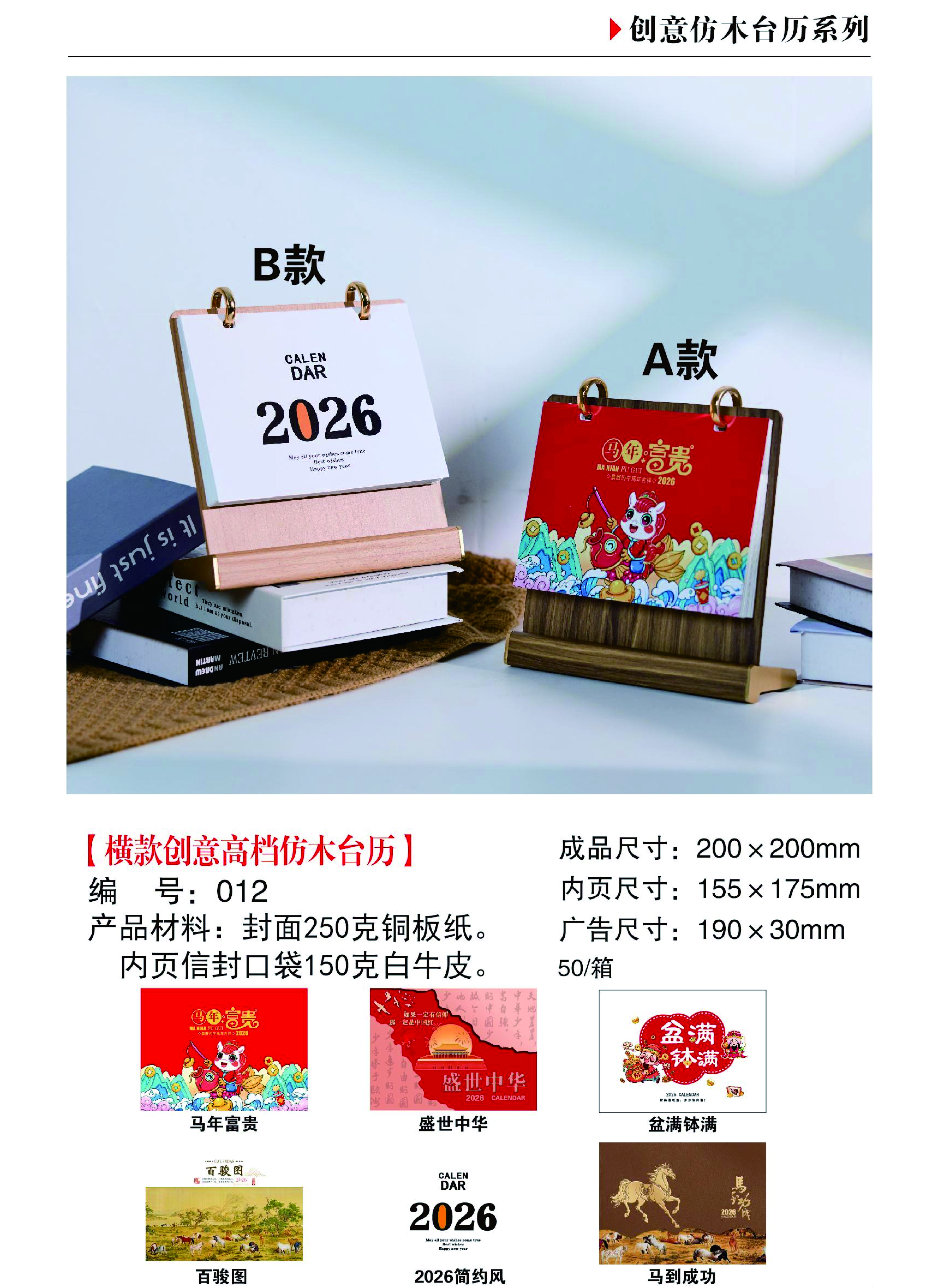 橫款創(chuàng)意高檔仿木臺歷-A款-B款