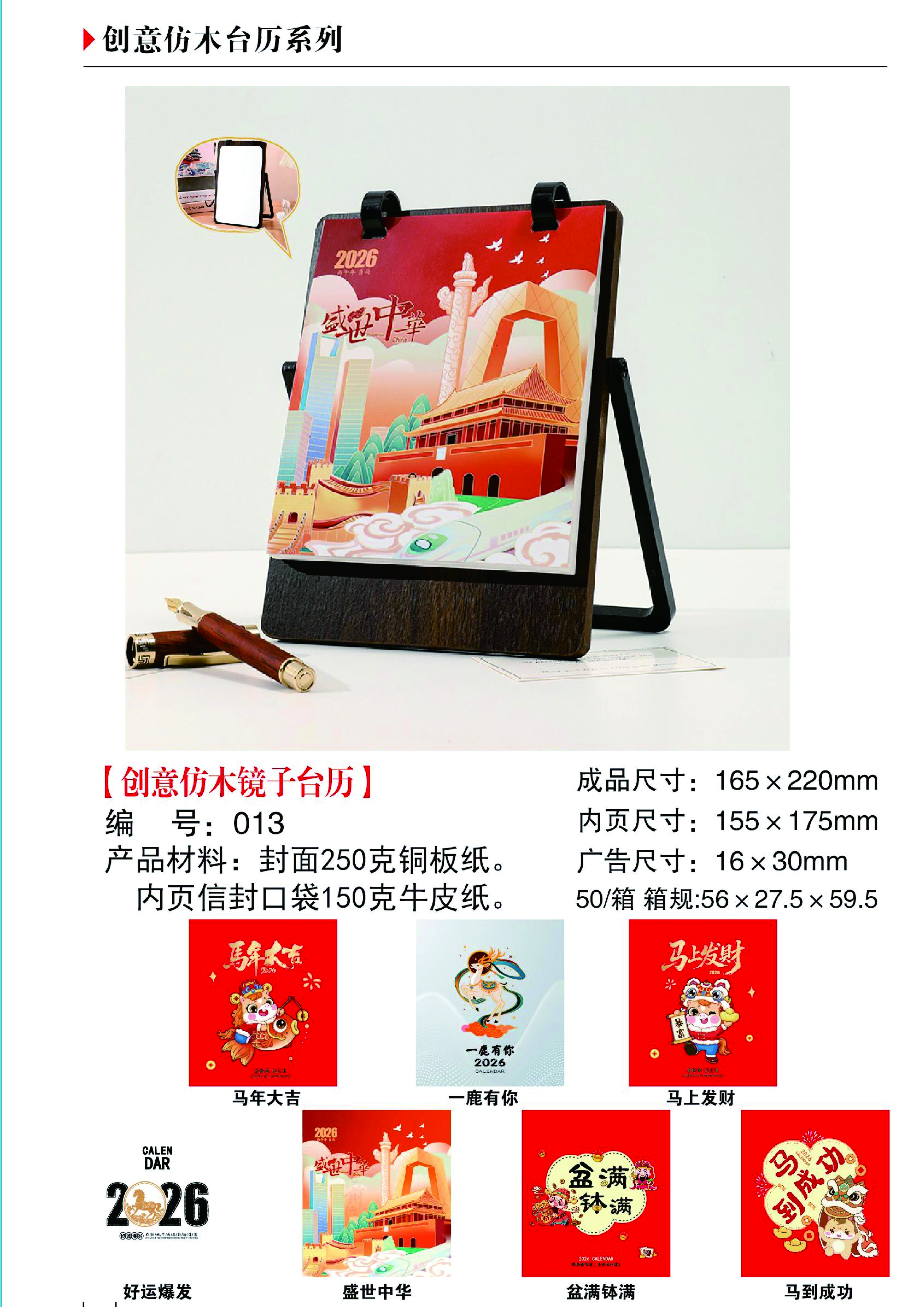 創(chuàng)意仿木鏡子臺歷-盛世中華