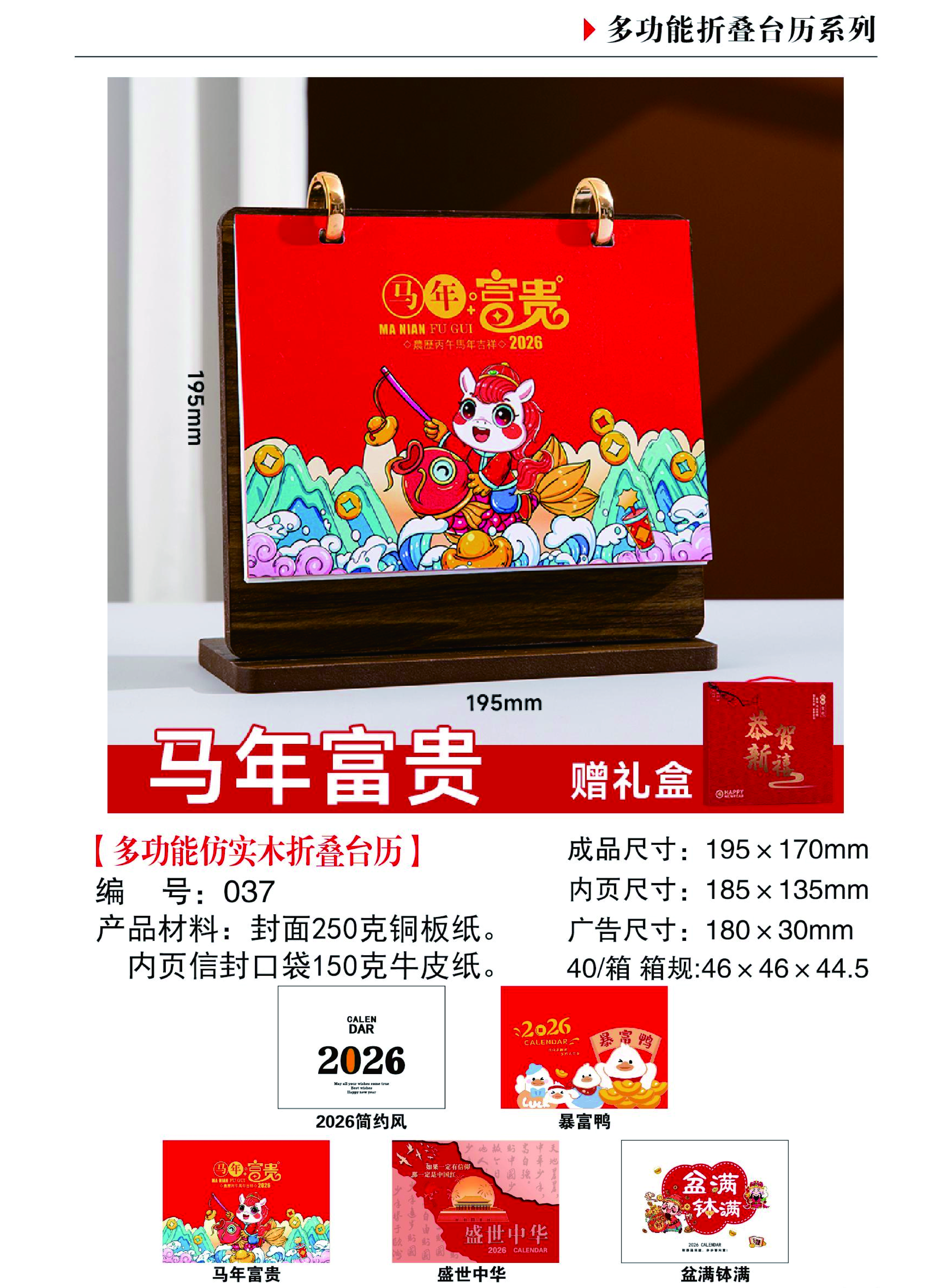 多功能仿實(shí)木折疊臺(tái)歷-馬年富貴