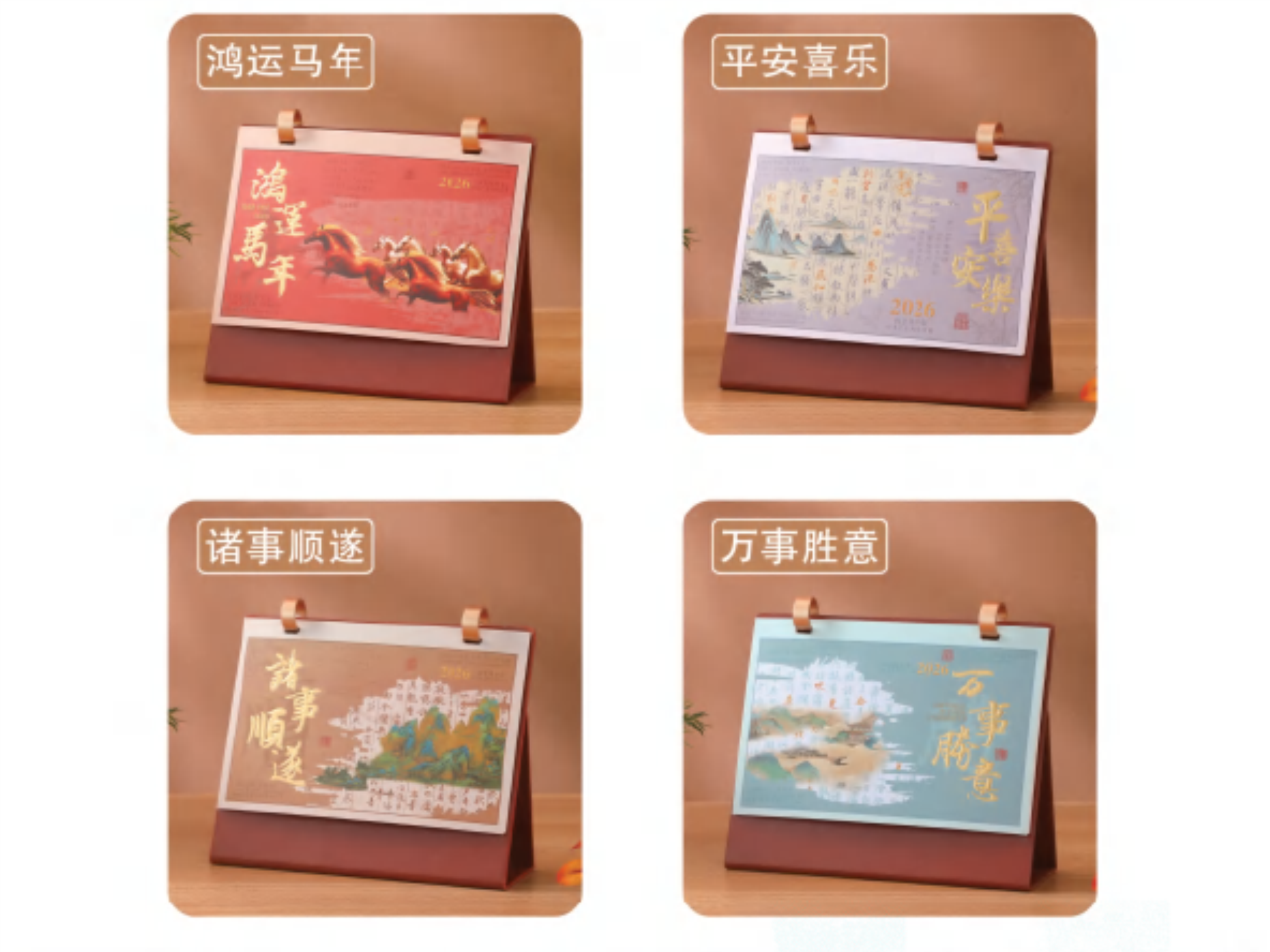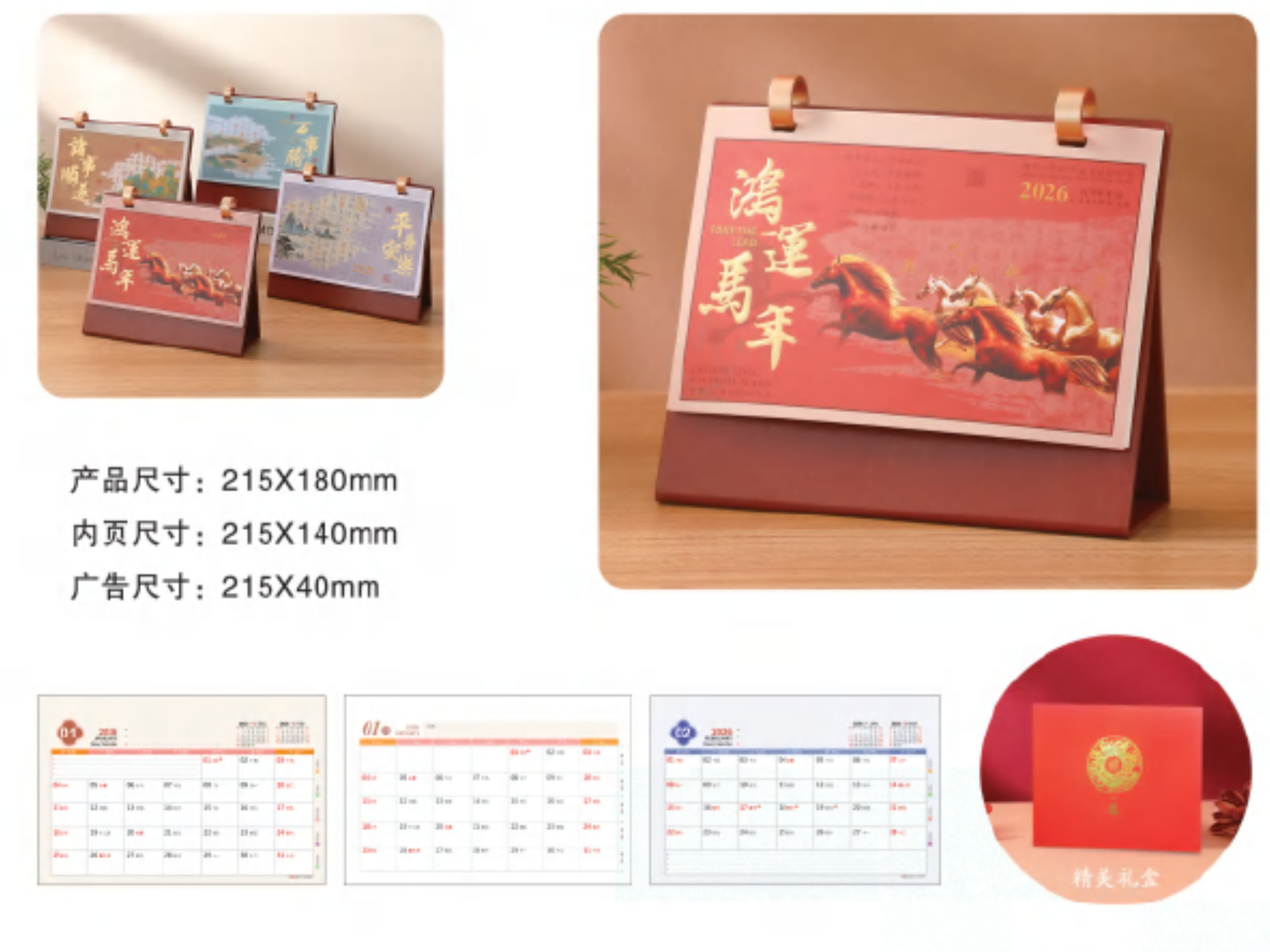雙圈國(guó)風(fēng)皮質(zhì)禮盒臺(tái)歷-鴻運(yùn)馬年
