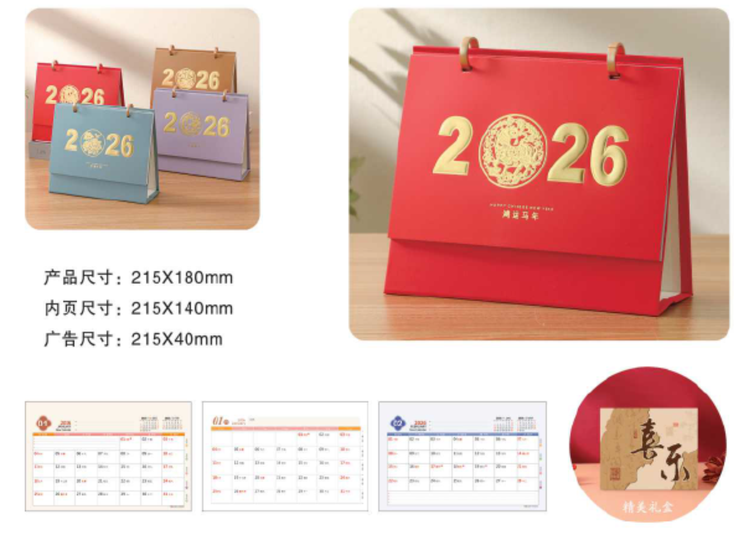 雙圈紙架簡約臺(tái)歷-鴻運(yùn)馬年