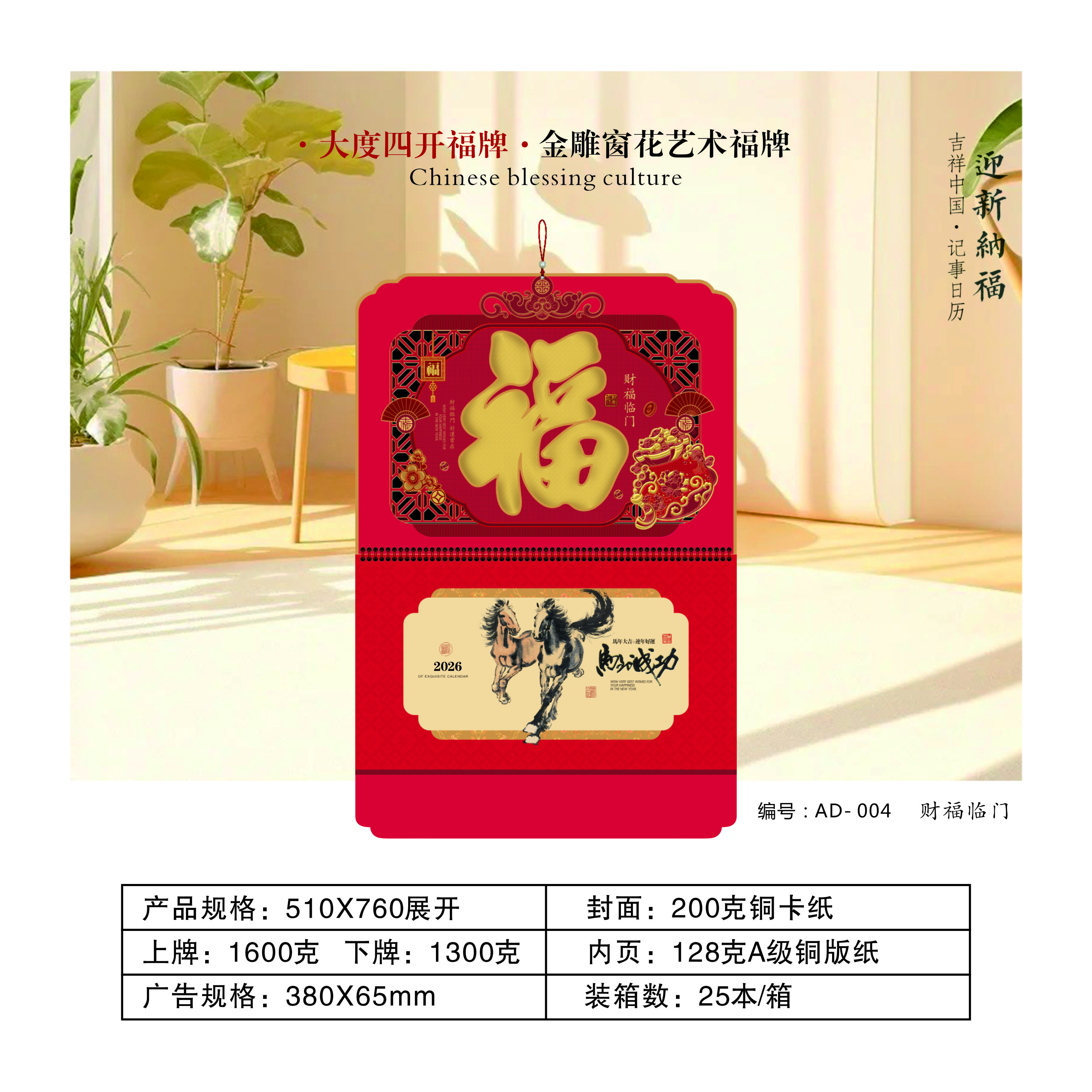 大度四開金雕窗花藝術(shù)福牌-財福臨門