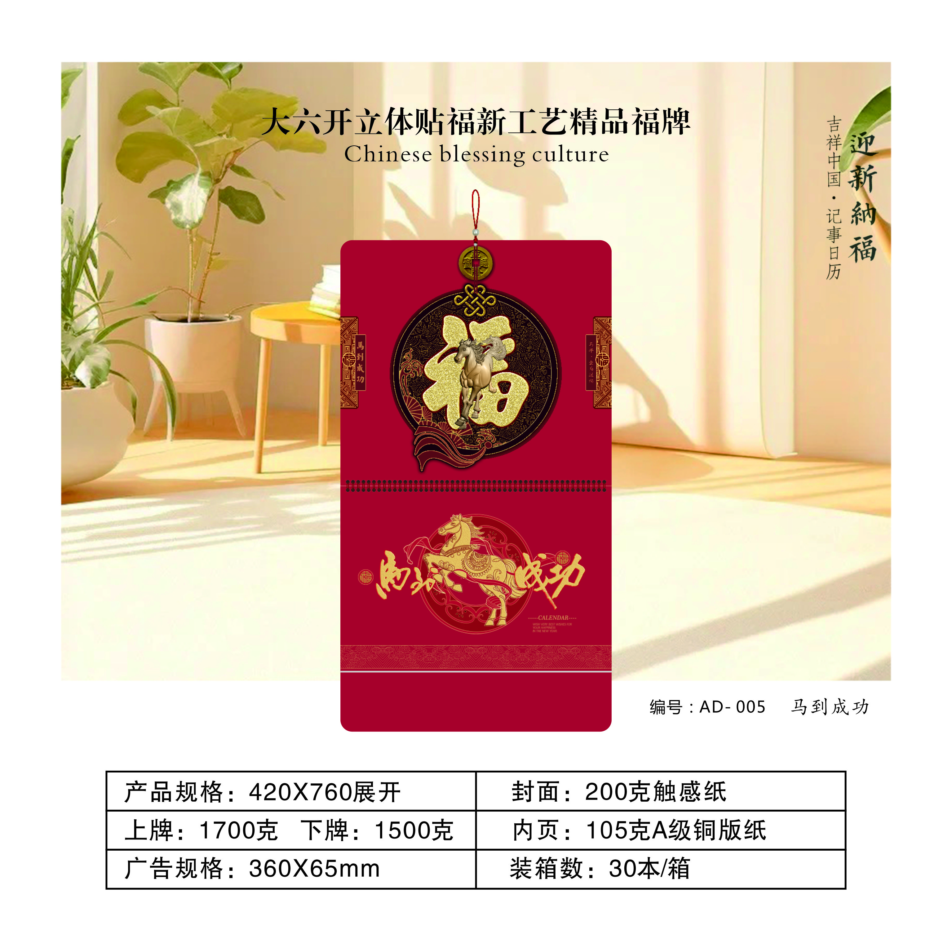 大六開立體貼福新工藝精品福牌-馬到成功