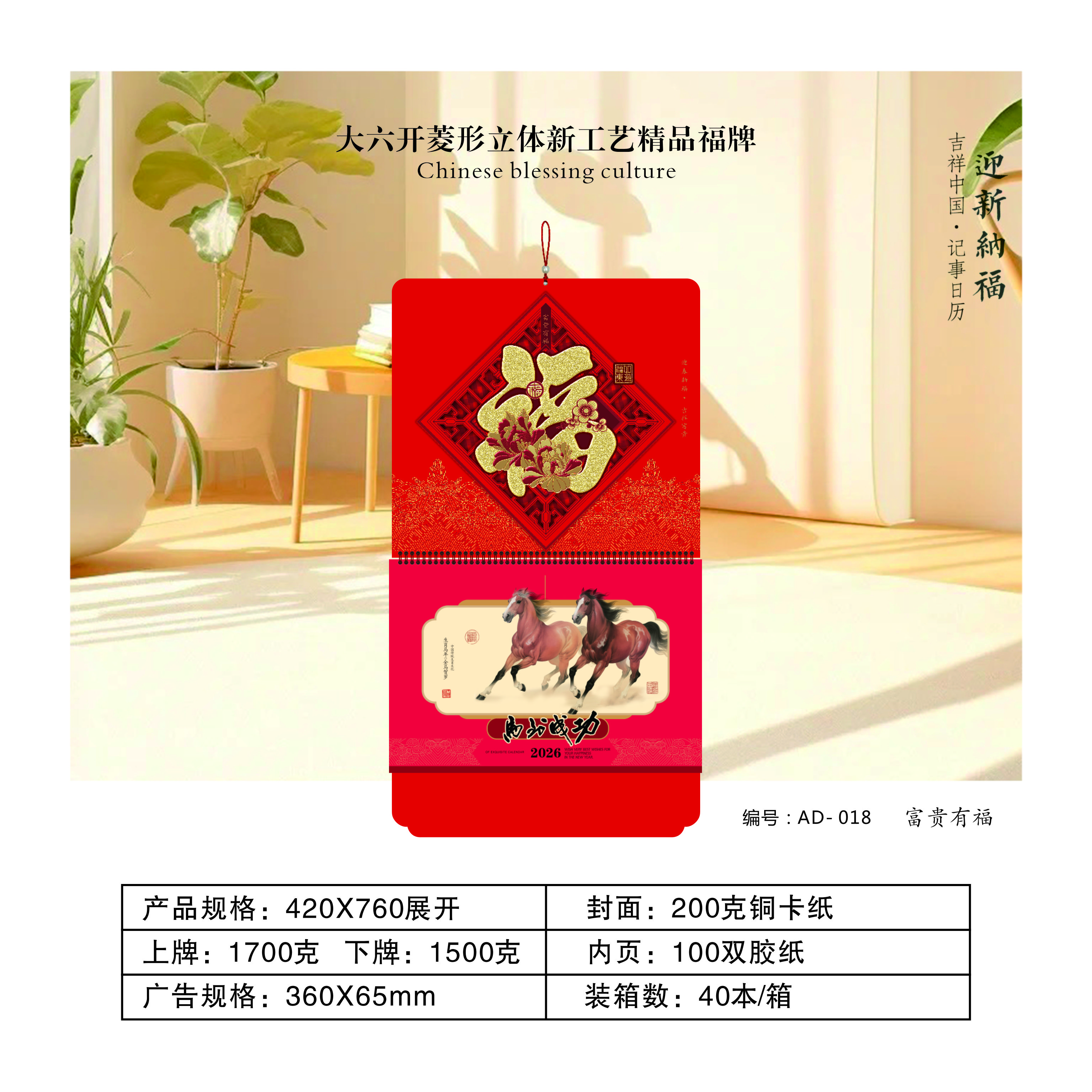 大六開(kāi)萎形立體新工藝精品福牌-富貴有福