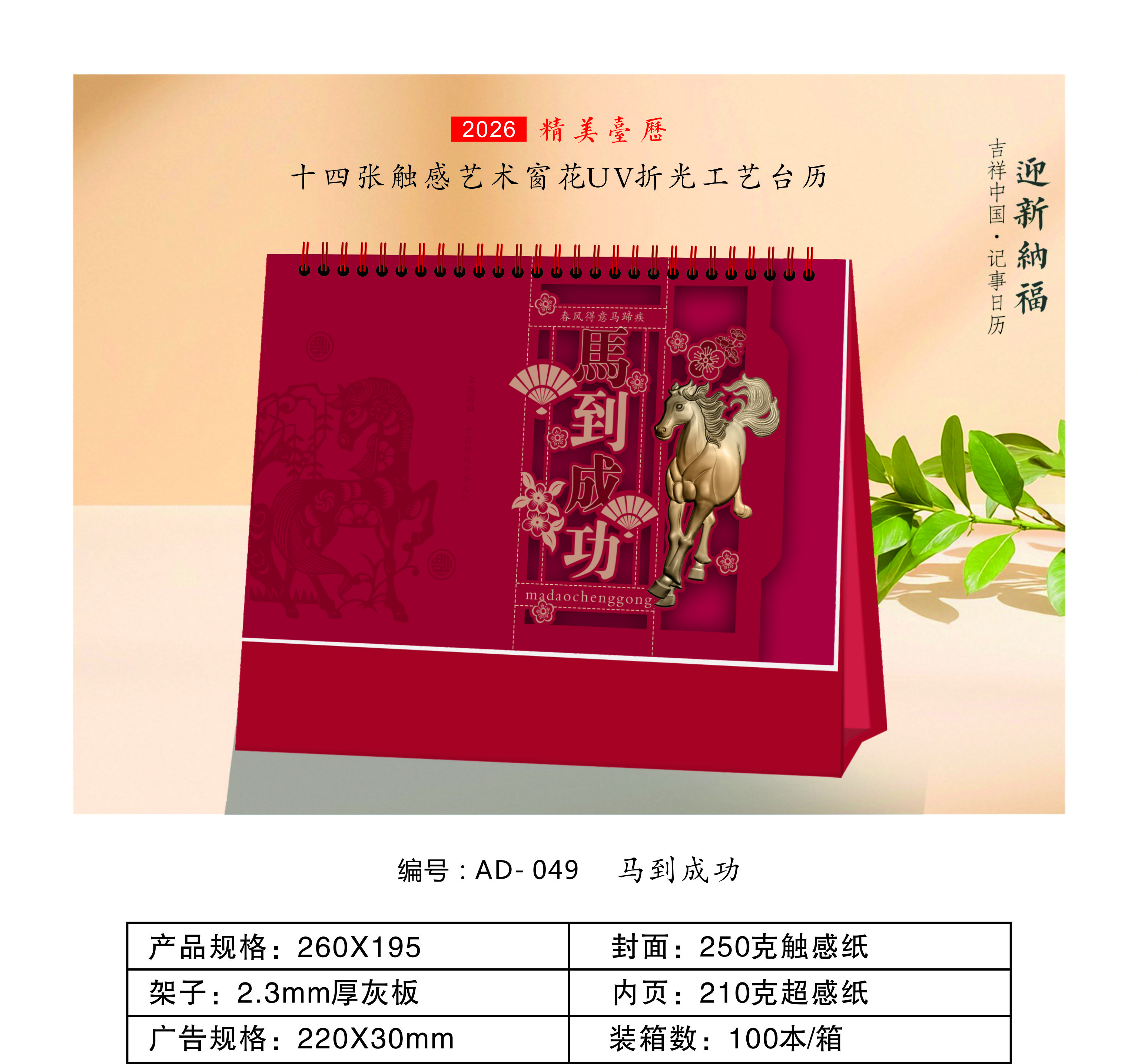 十四張觸感藝術(shù)窗花UV折光工藝臺歷-馬到成功