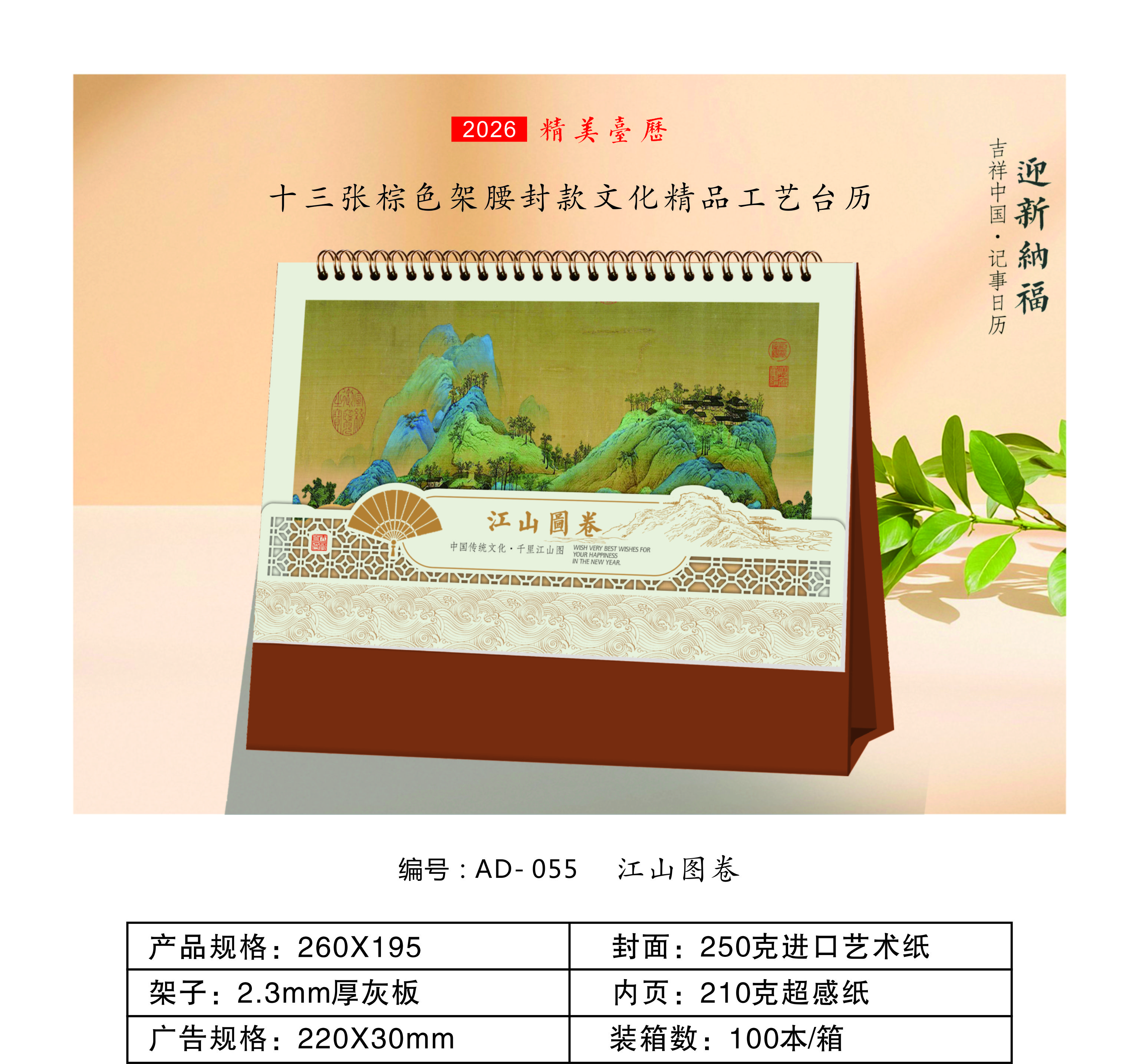 十三張棕色架腰封款文化精品工藝臺(tái)歷-江山圖卷