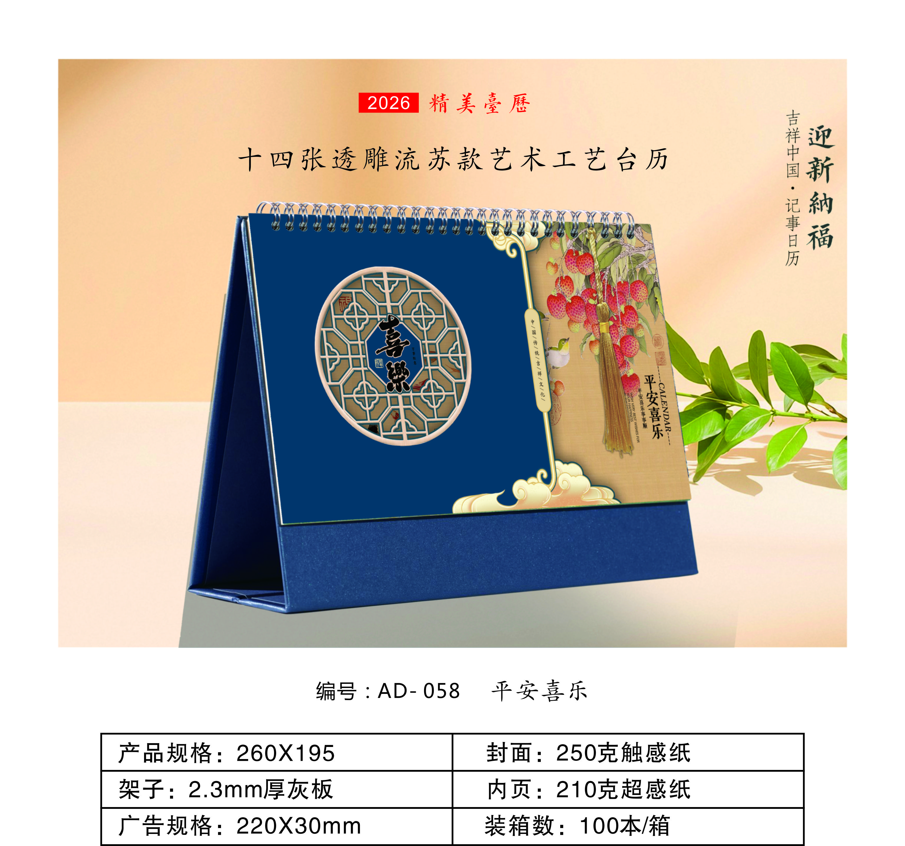 十四張透雕流蘇款藝術(shù)工藝臺(tái)歷-平安喜樂