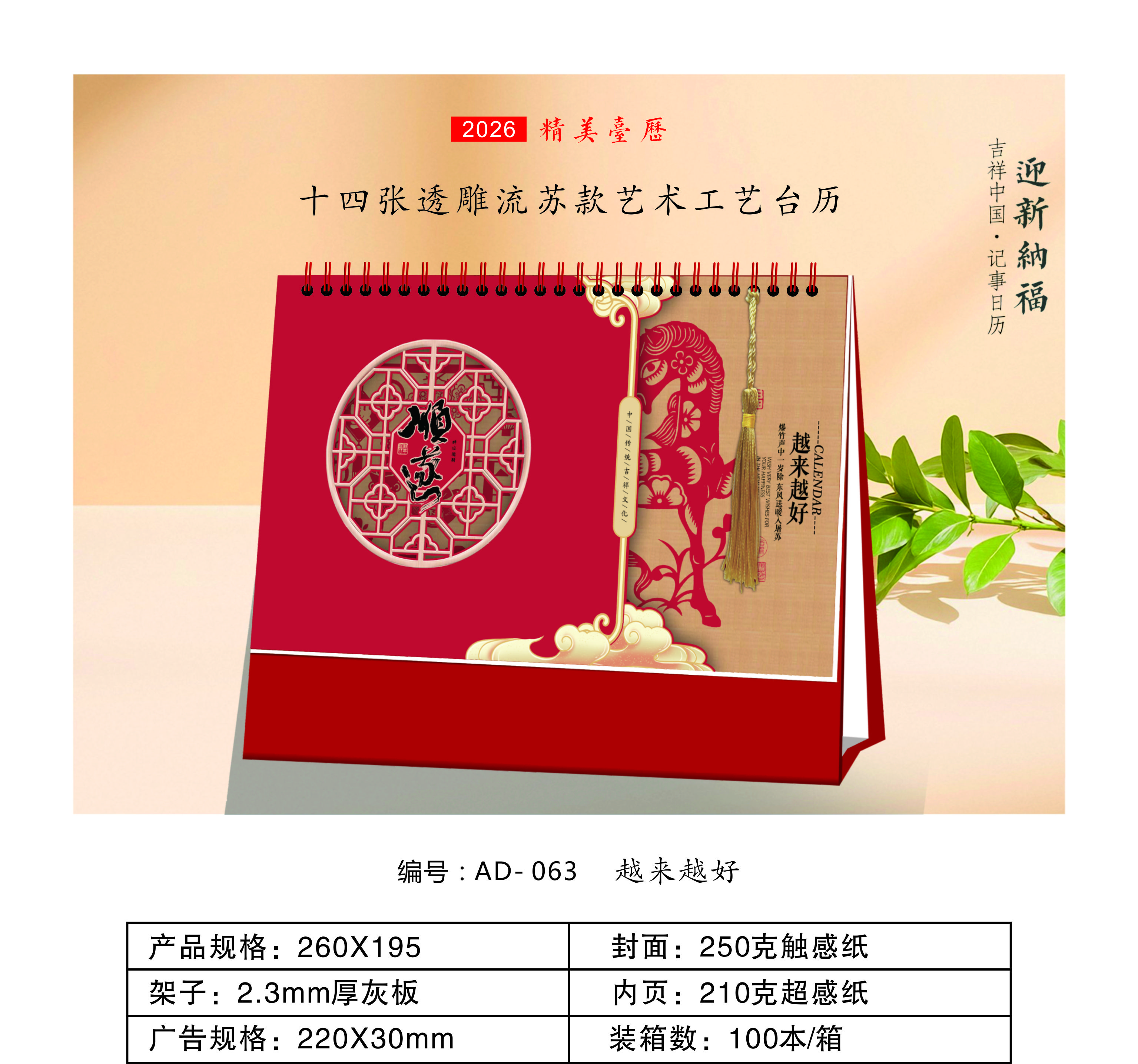 十四張透雕流蘇款藝術(shù)工藝臺(tái)歷-越來(lái)越好