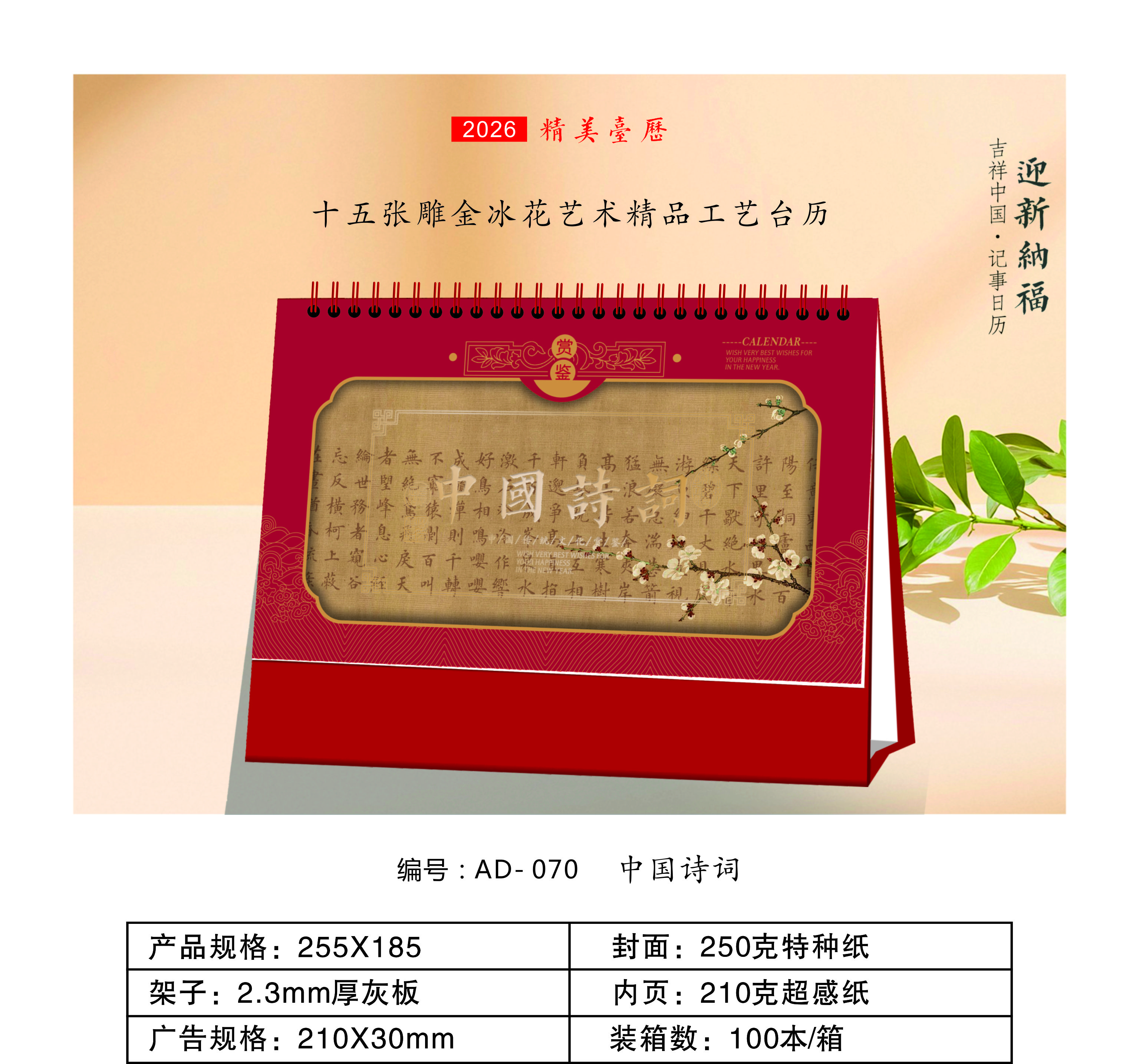 十五張雕金冰花藝術精品臺歷-中國詩詞
