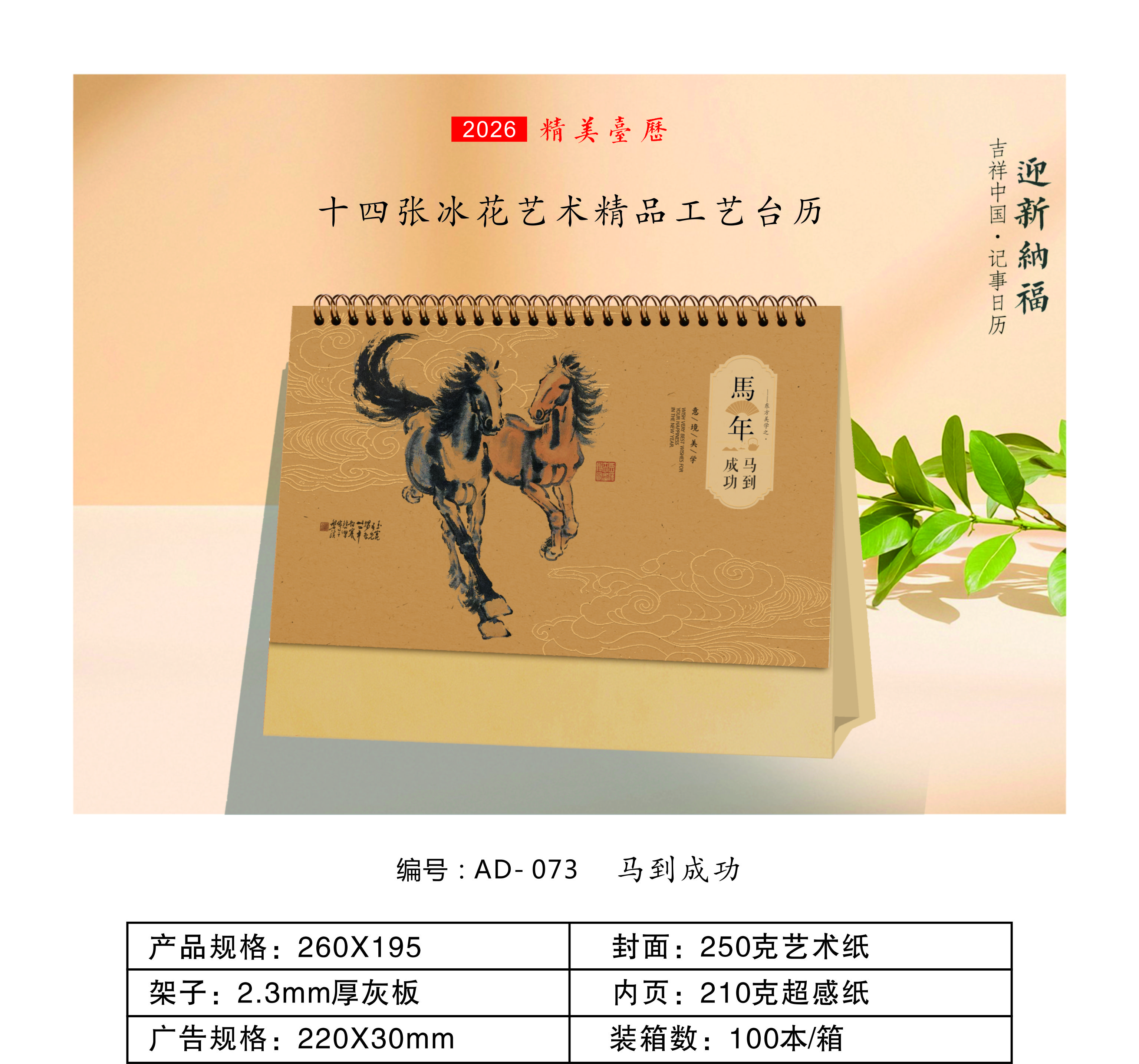 十四張冰花藝術文化精品工藝臺歷-馬到成功
