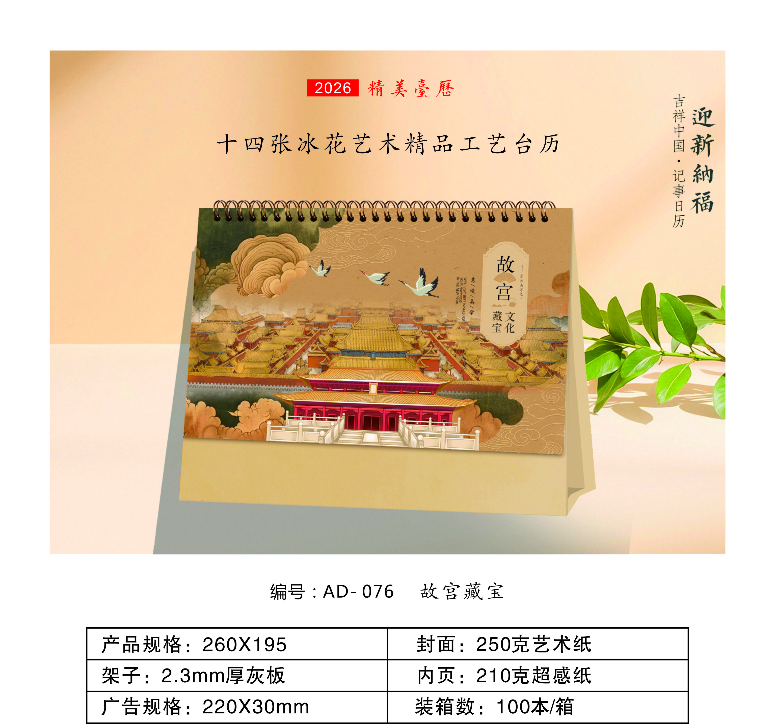十四張冰花藝術(shù)文化精品工藝臺歷-故宮藏寶