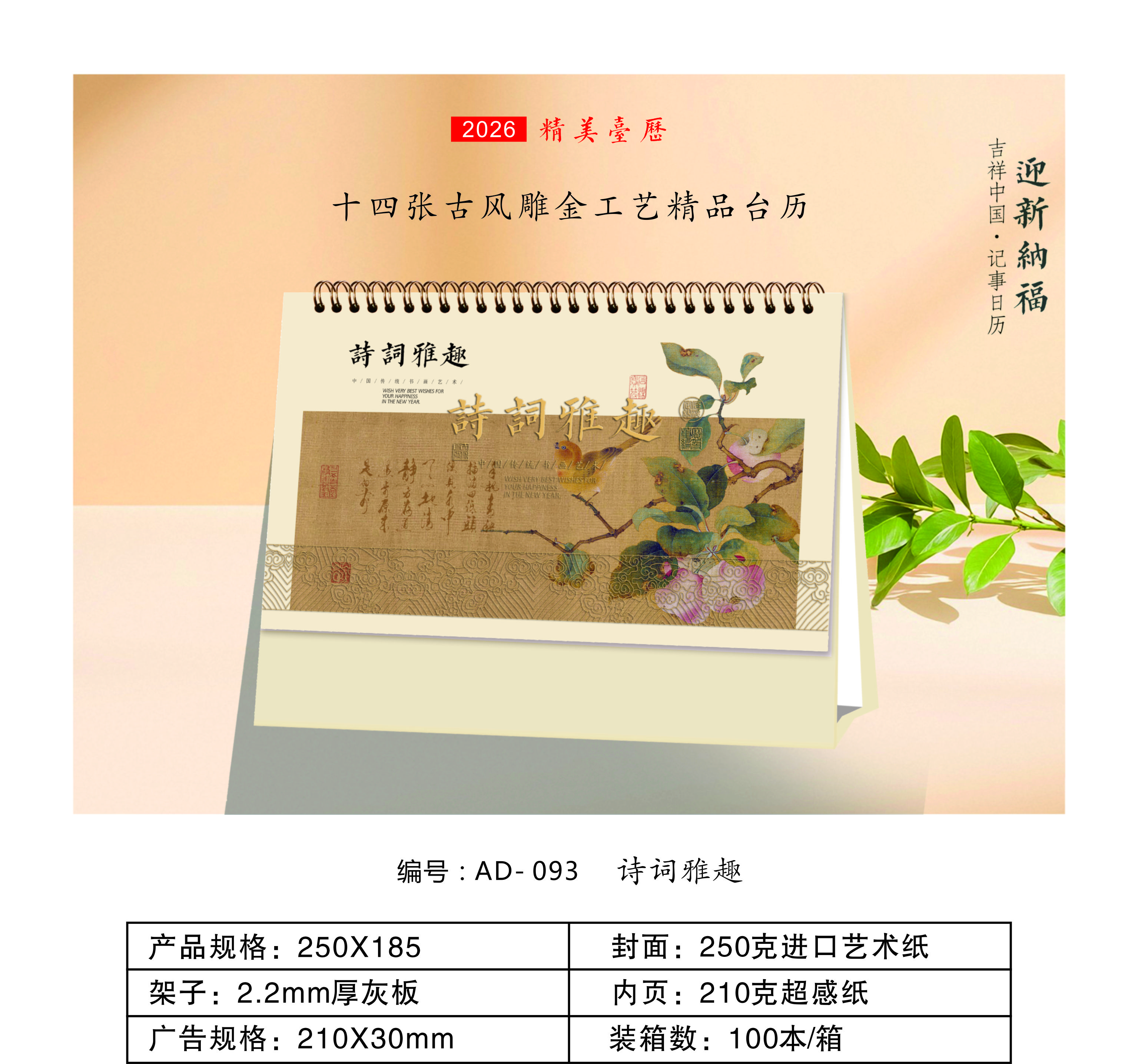 十四張古風(fēng)雕金布藝臺(tái)歷-詩(shī)詞雅趣