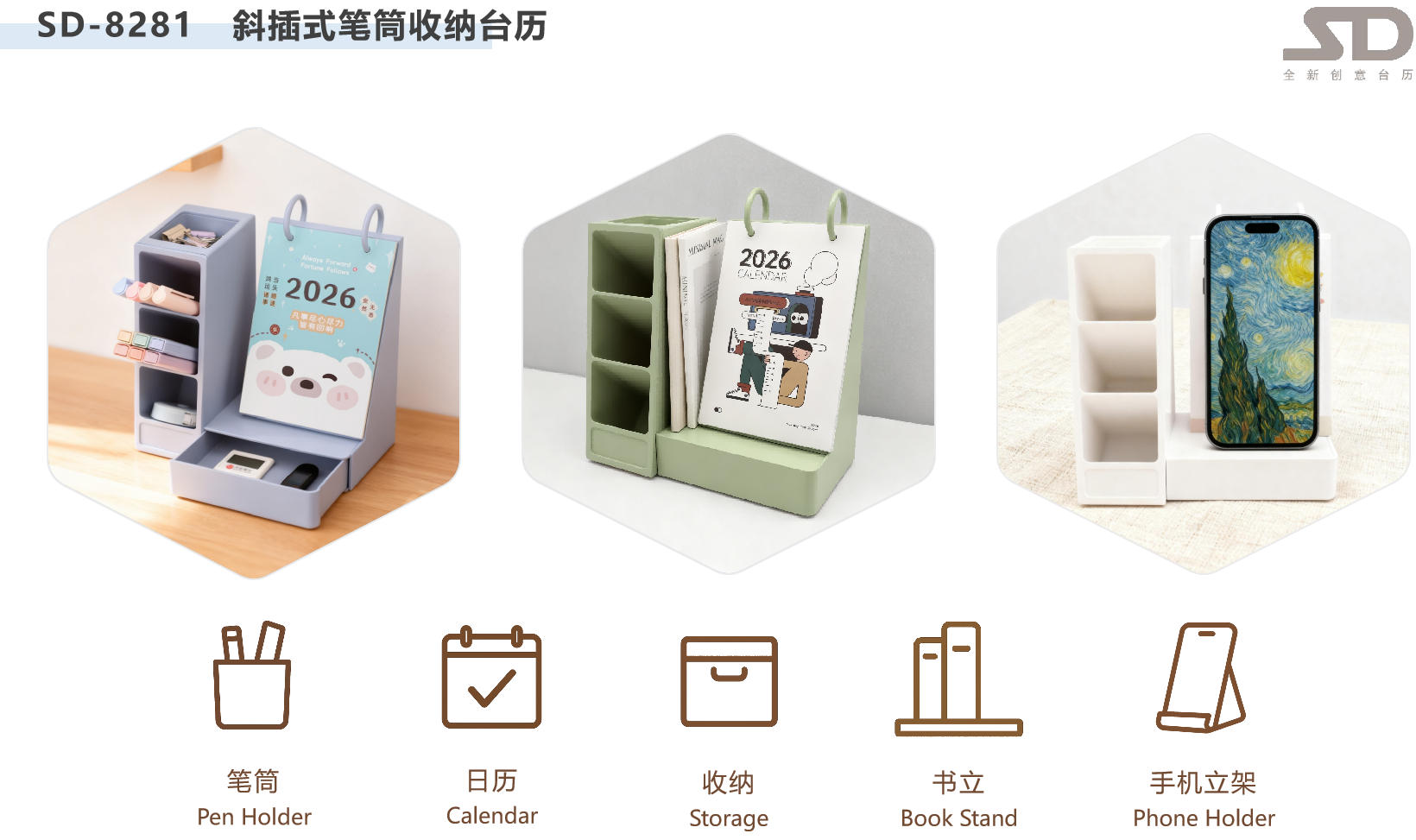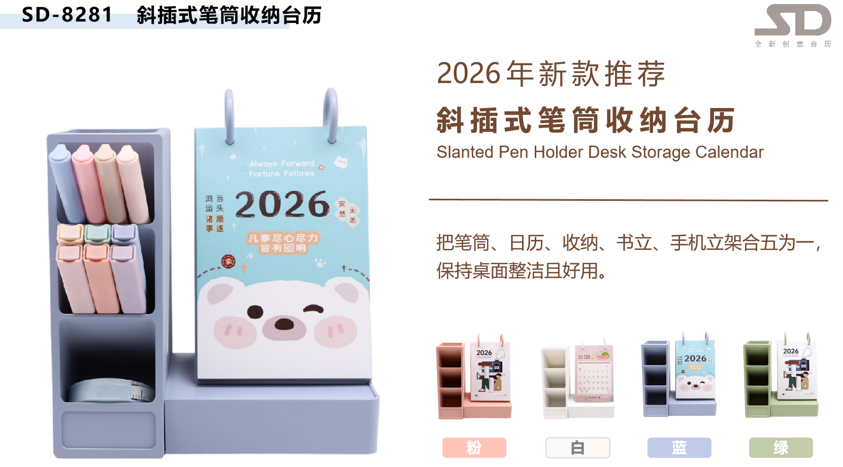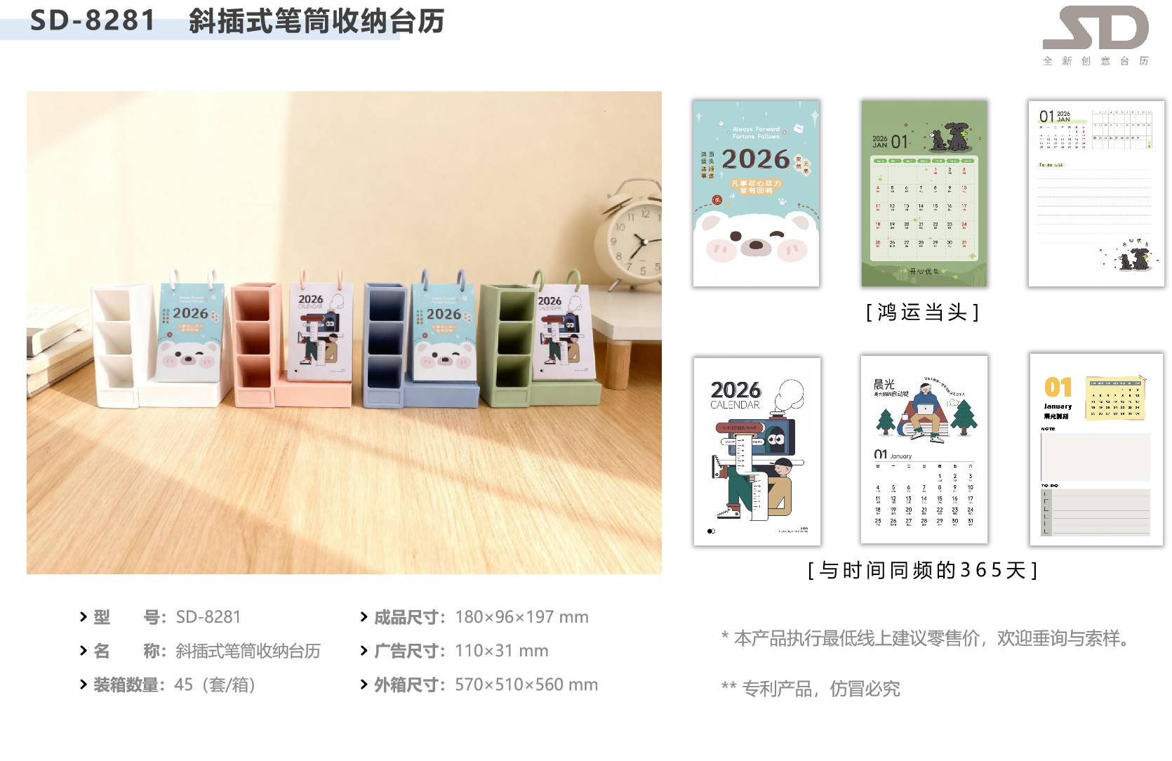 斜插式筆筒收納臺(tái)歷-鴻運(yùn)當(dāng)頭